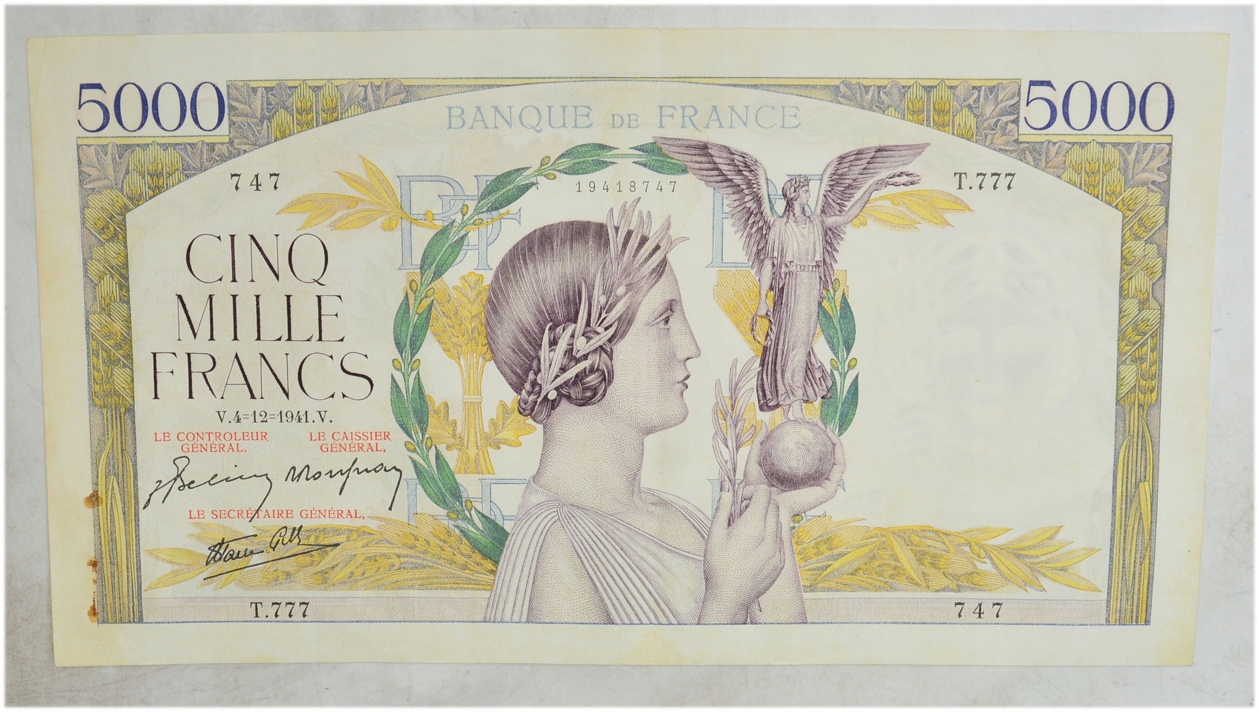 12.db.Francja , 5000 франків 1941 р. рідко, St.2/3+