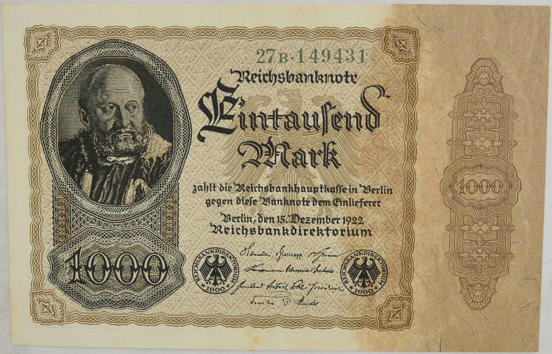 12.di.Niemcy , 1000 марок 1922, P.82.a , St.1-/2+