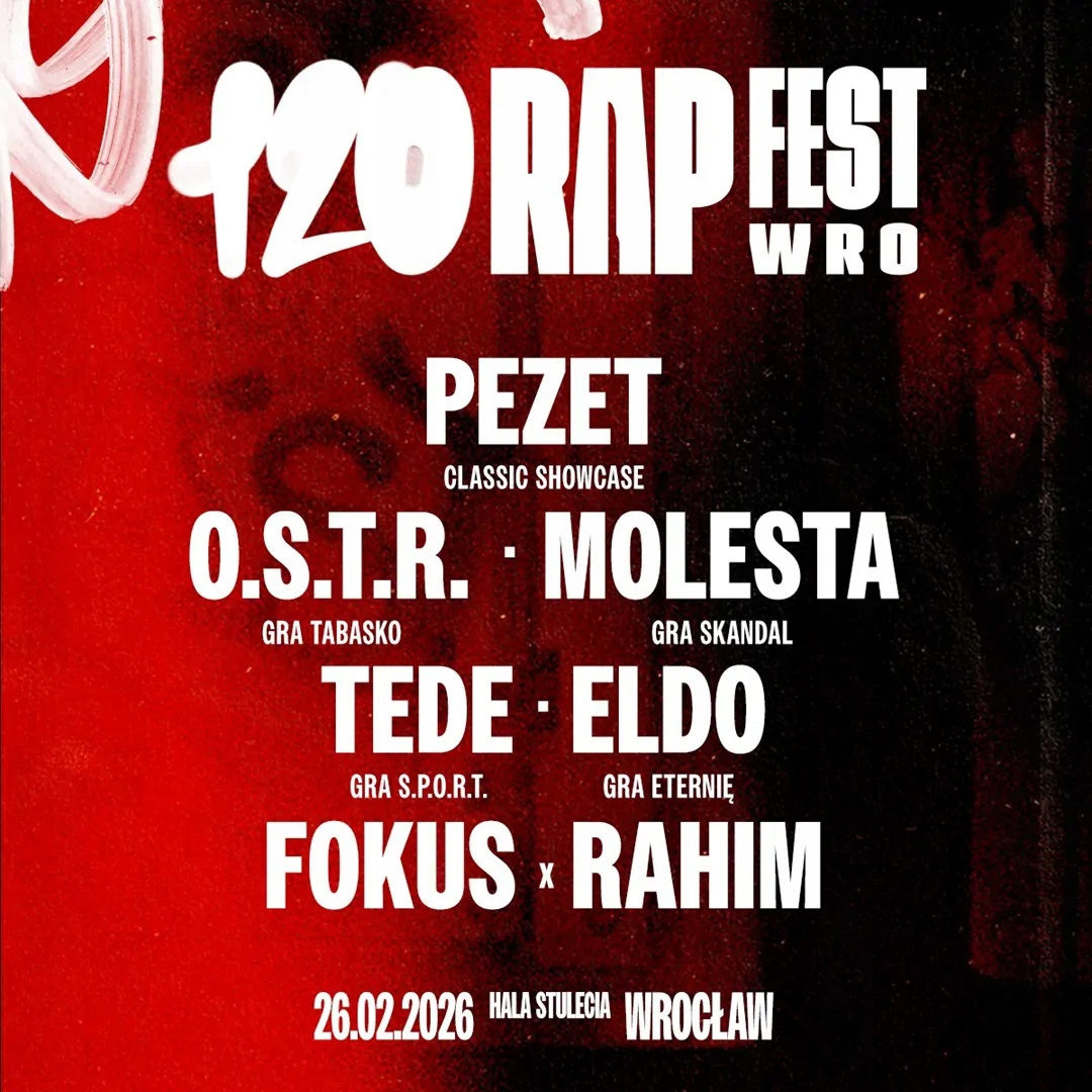 Після великого успіху варшавського видання, фестиваль рухається далі - настав час до Вроцлава! Квитки на 120 RAP FEST у Вроцлаві вже у продажу. Склад 120 RAP FEST Wrocław Вітрина Pezet Classic О.С.Т.Р. Гра Табаско Молеста грає Скандал Теде грає в S.P.O.R.T Елдо грає Eternia Фокус x Рахім 120 RAP FEST Wrocław 2026 Варшава: повний зал, тисячі вболівальників, унікальний триб’ют Поно та моменти, які увійдуть в історію. Наступна зупинка 120 RAP FEST – легендарний Зал Століття. Після вражаючого успіху варшавського видання, під час якого квитки були розкуплені, а зал був заповнений тисячами шанувальників, які співали класику польського хіп-хопу, 120 RAP FEST анонсує наступний випуск. На хвилі цієї енергії та величезного інтересу Вроцлав приєднується до 120 RAP FEST. 26 лютого 2026 року Hala Stulecia стане домашньою вечіркою для найважливіших альбомів і артистів польської реп-сцени. Проведення 120 RAP FEST у Варшаві стало яскравою демонстрацією сили хіп-хоп культури. Глядачі не лише заповнили зал до упору, а й створили атмосферу, яка засвідчила, наскільки сильна пам’ять про класику репу. Одним із найзворушливіших моментів заходу став Tribute for Pono, який віддає данину поваги одному з найвпливовіших творців сцени, а також виступ усього ZIP Skład, під час якого тисячі людей співають в один голос. Варшава чітко показала: хіп-хоп – це не мода. Це основа культури і живий зв’язок між поколіннями. Після Лодзі та Варшави настав час наступного кроку. Вроцлав отримує видання, про яке давно мріяв – нова сцена, нова енергія, але та сама атмосфера: чесна, стара школа, міська. 120 RAP FEST у Вроцлаві буде схожим на повернення на місцеву лавку, де слова були важливі, а біт міг змінити день. Це вечір, сповнений історії, спогадів і класики, які виховали ціле покоління слухачів. Що таке 120 RAP FEST? Це не просто концерт. Це найбільша реп-хаус-вечірка в Польщі. Це музична зустріч поколінь, данина альбомам, які сформували сцену та простір, де досі живе дух старої школи. Це подія, де «слово за словом ллється», а емоції повертаються з тією силою, яку має тільки класика.