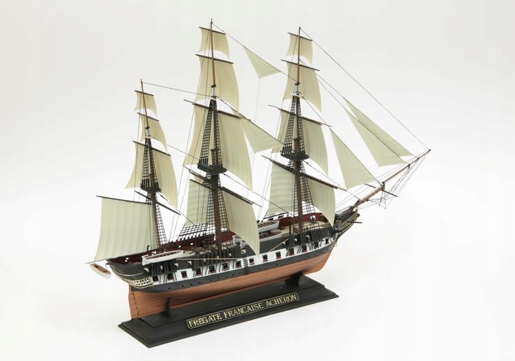 Модель легендарного французького фрегата «Ашерон» часів Наполеона, який прославився своїми активними діями проти англійських китобійних суден і прибережних торгових суден навколо узбережжя Південної Америки. Цей фрегат вважався кошмаром для британського Адміралтейства та його моряків. Потужні вітрила надавали «Ахерону» такої швидкості, що робила його практично недосяжним для інших кораблів, а його борт буквально змітав усе з палуб ворожих кораблів.