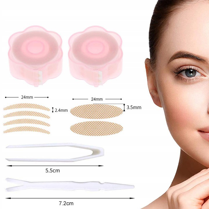 Самоклеючі стрічки для повік для корекції навислих повік. Завдяки матеріалу, з якого вони виготовлені (гнучка медична гума), складки можна розташувати як завгодно.