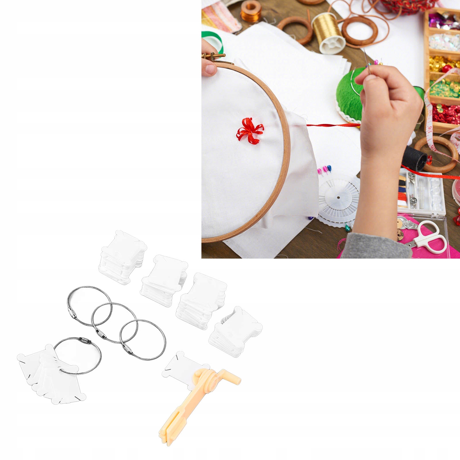 4. [Повні інструменти] Ручна машина для обмотки та картки, що містять кільця та інші інструменти, допомагають підвищити ефективність шиття.