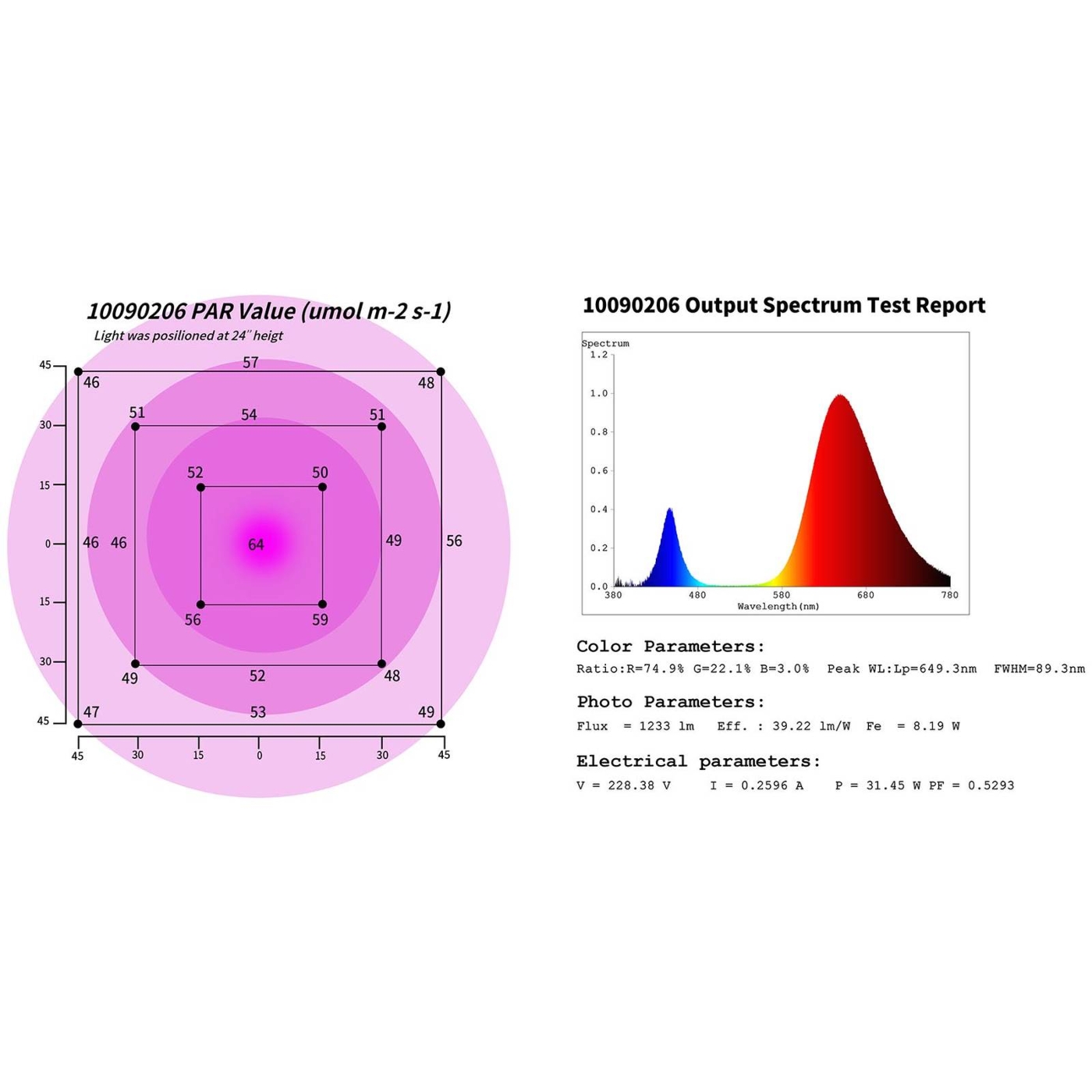 - Ефективність - Червоне та синє світло (620-660 нм; 460-470 нм) для оптимізованого зростання різних рослин на всіх етапах