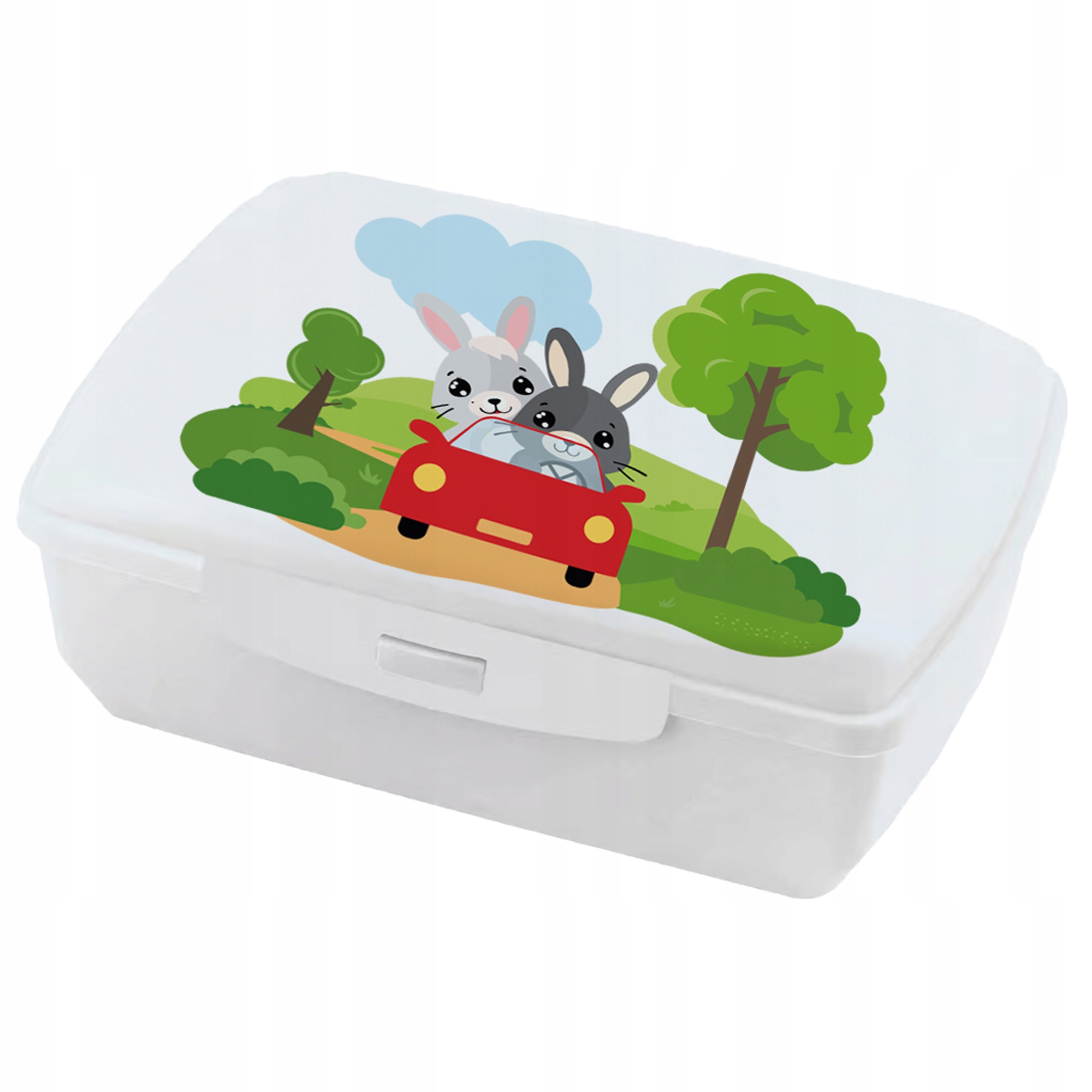 Практична здатність: 1,35 л ідеально підходить для дитячих страв Безпечні матеріали: виготовлені з міцних, безпечних матеріалів Симпатичний дизайн: мотив двох зайчиків у машині, яка заохочує їжу Універсальність: ідеально підходить для зберігання бутербродів, фруктів та закусок Простота технічного обслуговування: Швидке для чищення та гігієнічного використання