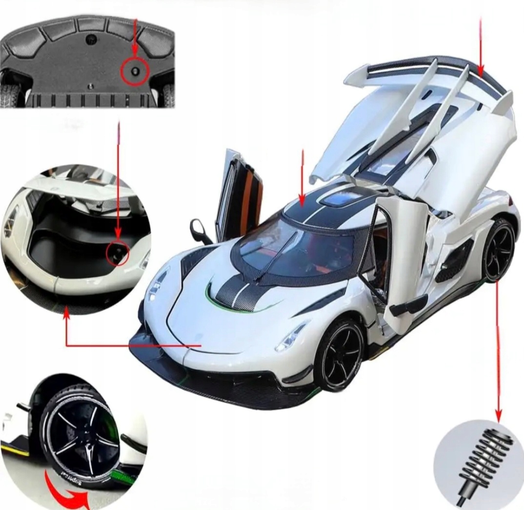 Відкрийте унікальну модель Koeniggegg Jesko в масштабі 1:24 - ідеальну репродукцію. Ця модель - це більше, ніж іграшка - це ідеальне поєднання дизайну, функціональності та найвищої якості виготовлення, яка задовольнить як молодих, так і старших шанувальників автомобілів.Функції, які радують: