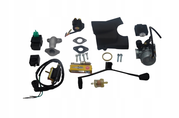 - Опція з карбюратором і модулем запалювання, регулятором напруги, реле стартера, котушкою запалювання, паливним фільтром , повітряний фільтр , додаткова свічка NGK, прокладка глушника + 100 зл.