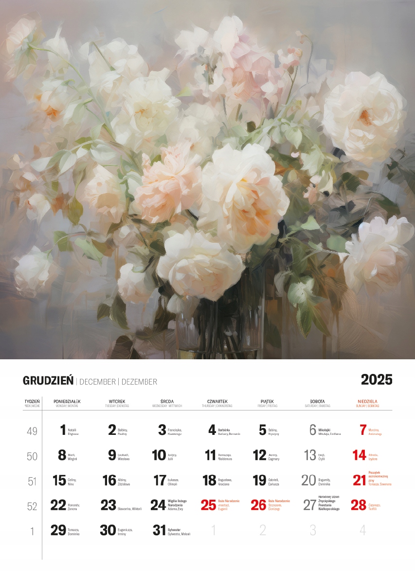 125 Календар 2025 А3 Квіти розпис вертикальний 7 карт