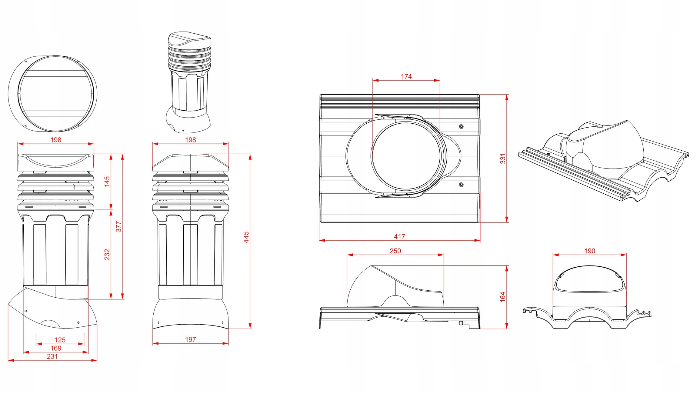 125 мм камін вентиляції Parotec для грецької плитки Braas - цегла