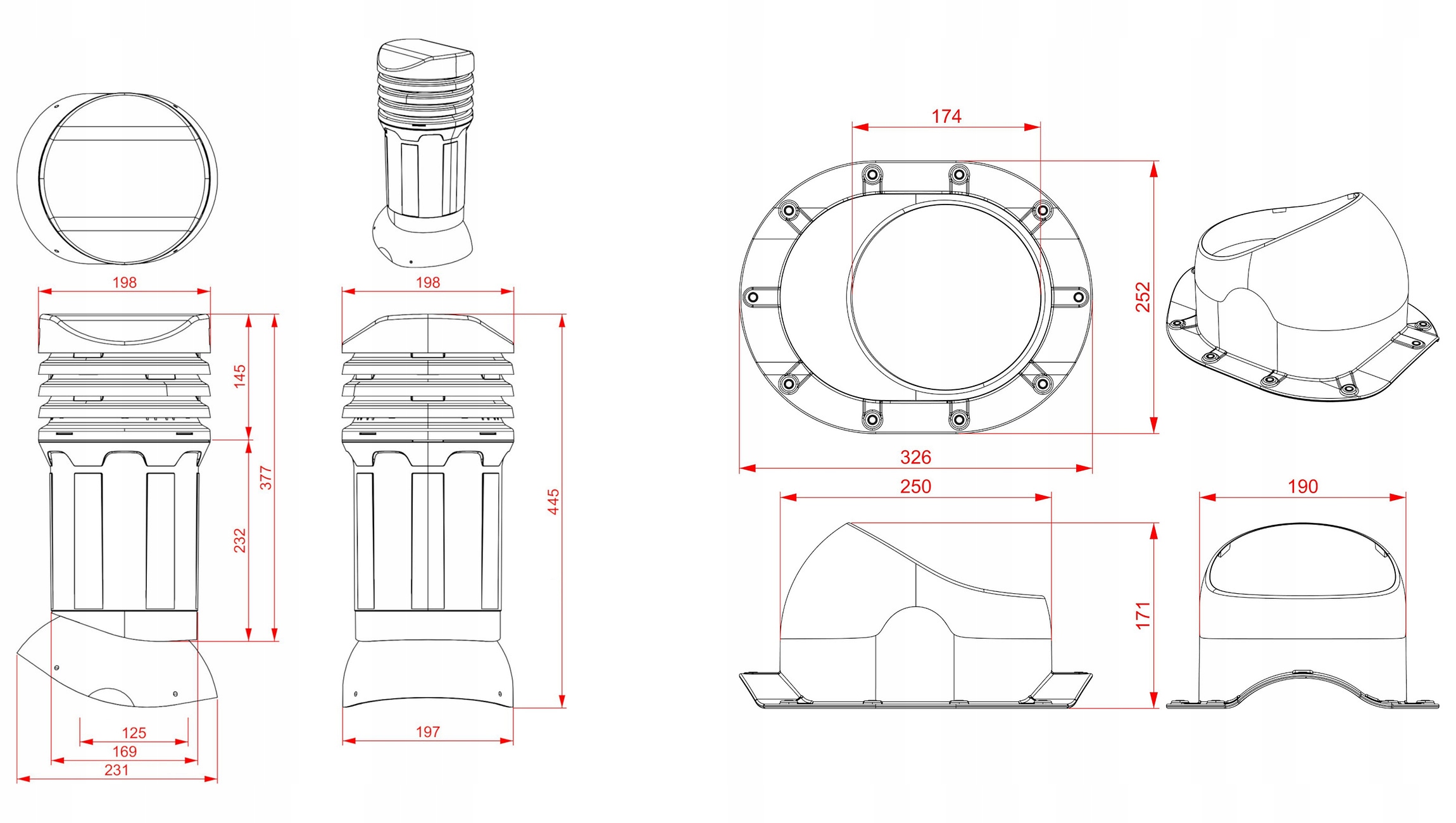 125 мм камін вентиляції Parotec для кожної плитки на даху 35 мм червоний