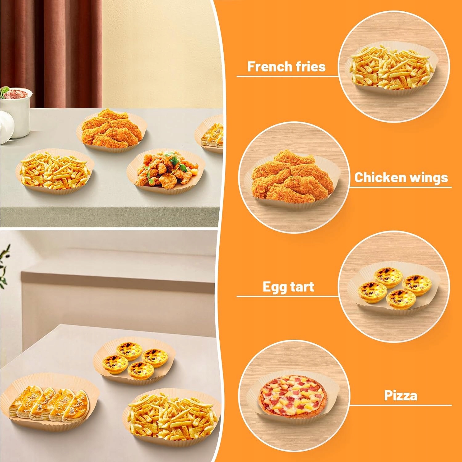 【Зручний і універсальний】 Пергаментний папір для аерофритюрниці можна використовувати в мікрохвильовій печі, жаровні, духовці, аерофритюрниці та сковородах! Ці пекарські папери можна використовувати для запікання, запікання, смаження та подачі їжі. Вони підходять для кемпінгу, домашньої випічки, барбекю, літньої вечірки тощо.
