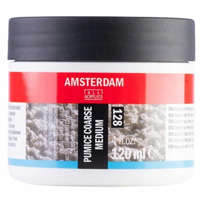 Густа паста-пемза Royal Talens серії Amsterdam, наноситься шпателем або пензлем. Призначений для використання з акриловими фарбами. Пемзову пасту можна наносити прямо з банки або змішувати з акриловою фарбою. Засіб світло-сірого кольору - змішування з фарбою впливає на колір. Товсте зерно пемзи залишає чітку текстуру. Носій можна змішувати з іншими носіями тієї ж серії. Після висихання паста стає водостійкою. Очистіть інструменти теплою водою. Використовувати при температурі вище 10°C і зберігати в захищеному від морозу місці. Баночка ємністю 120 мл.