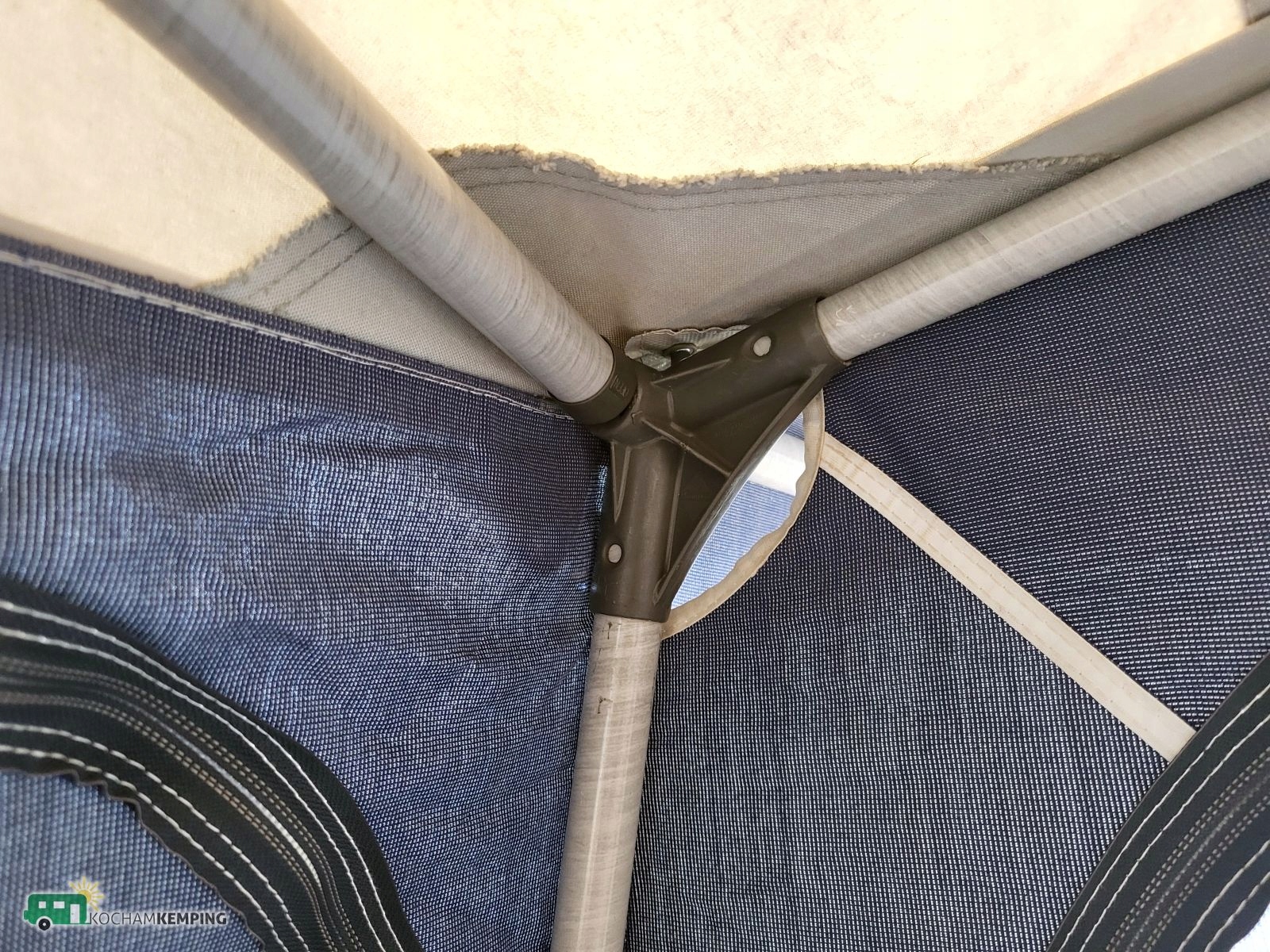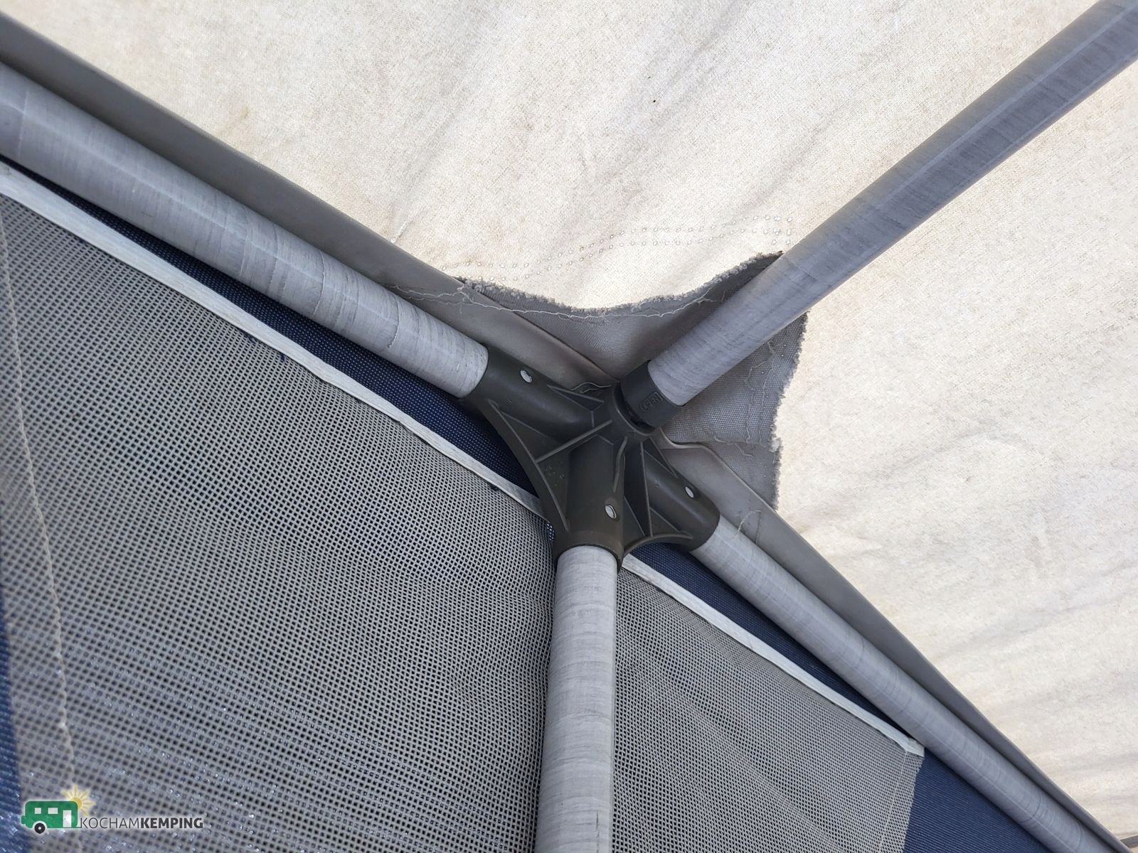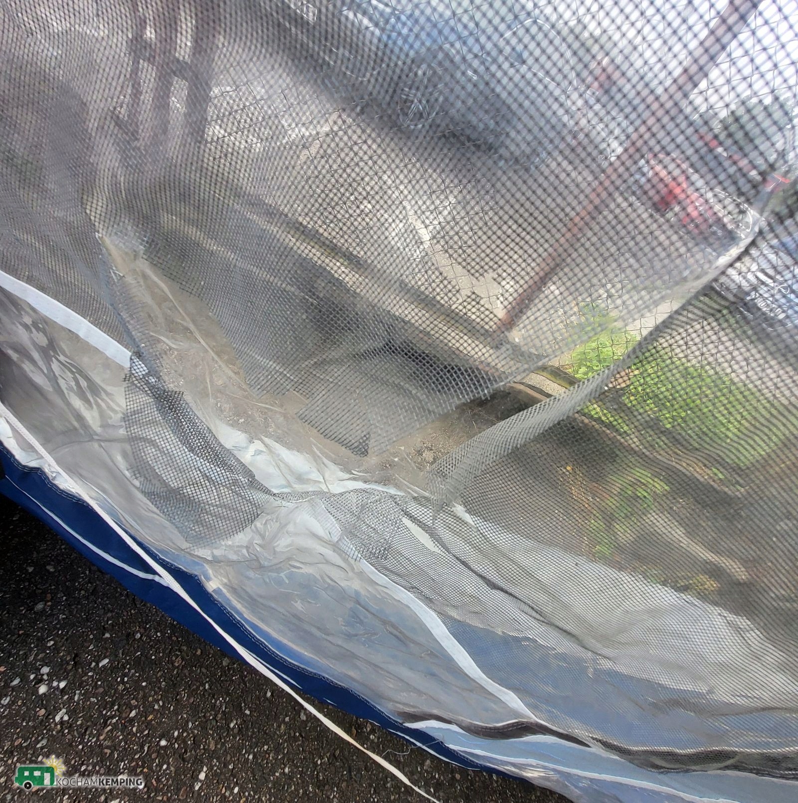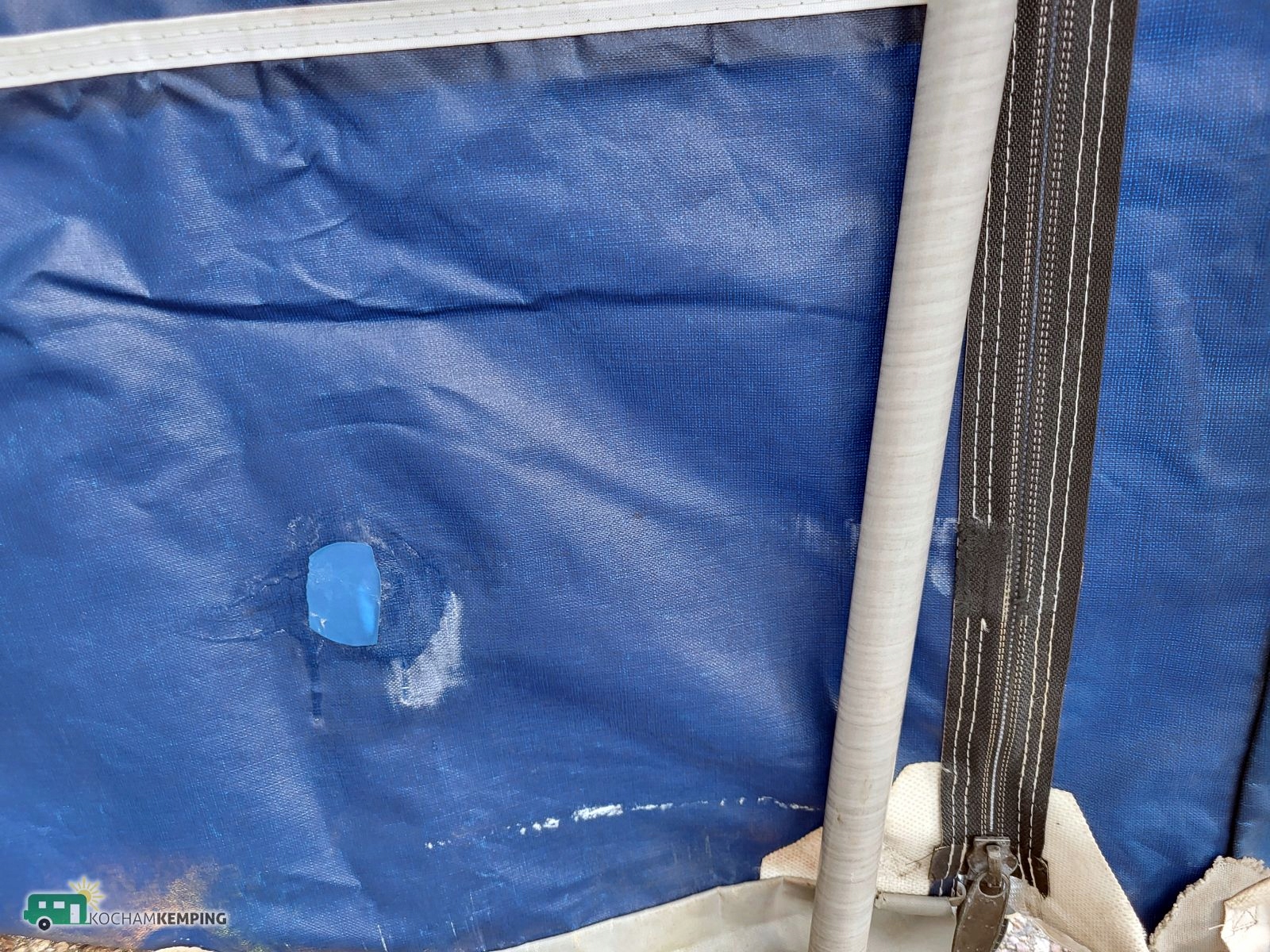 розірвана сітка комарів у вікні, вирвані шви у верхніх двох передніх кутах, невеликий патч зсередини внизу стіни на комірах