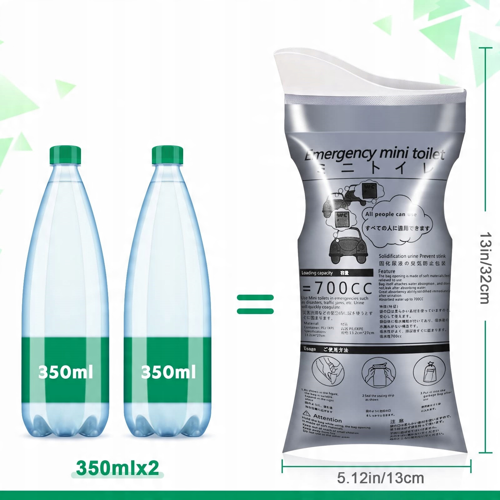 Висока потужність і рухливість: мішки з сечею мають місткість приблизно. 700 мл і є досить портативними, щоб поміститися в кишеню або зберігання рукавичок.