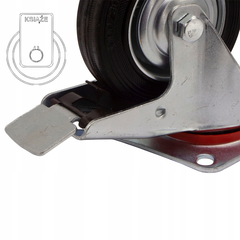 Колесо має металеву втулку та гумове колесо, корпус оцинкований.