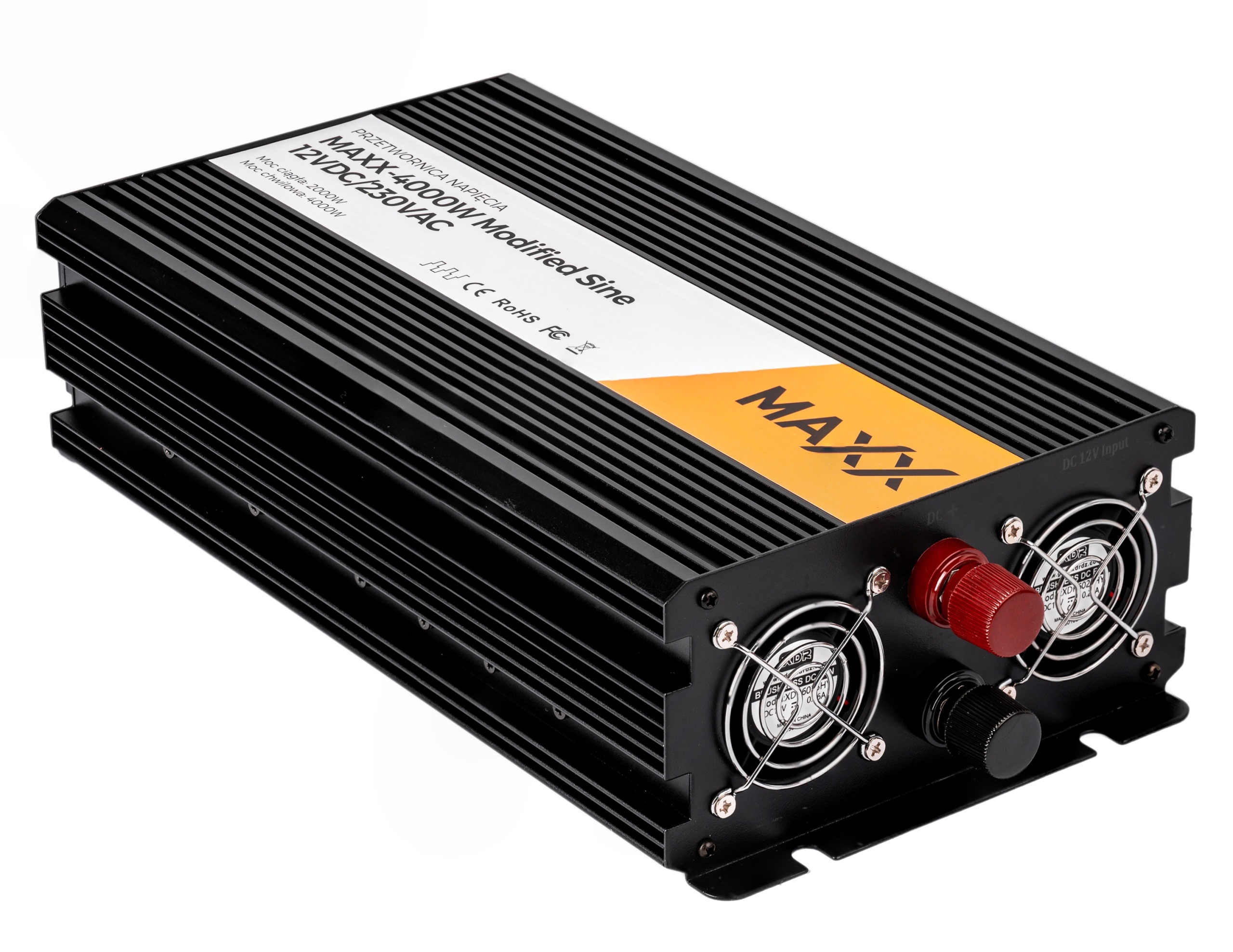 Серія електронних перетворювачів напруги MAXX використовується для живлення електричних пристроїв, які потребують змінної напруги 230 В від акумуляторів і автомобільних установок з постійною напругою 12 В. Перетворювачі ідеально підходять для місць, де немає можливості прямого підключення до електромережі.