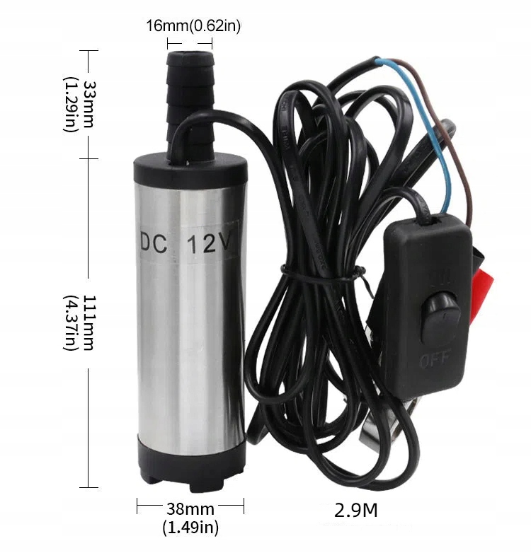 Підходить для використання з реле тиску та системами мікроперемикачів. Цей занурювальний міні-дизельний насос є простим і доступним рішенням для водяних і дизельних систем для будинків на колесах, караванів, будинків на колесах і суден.