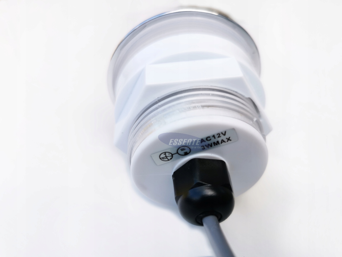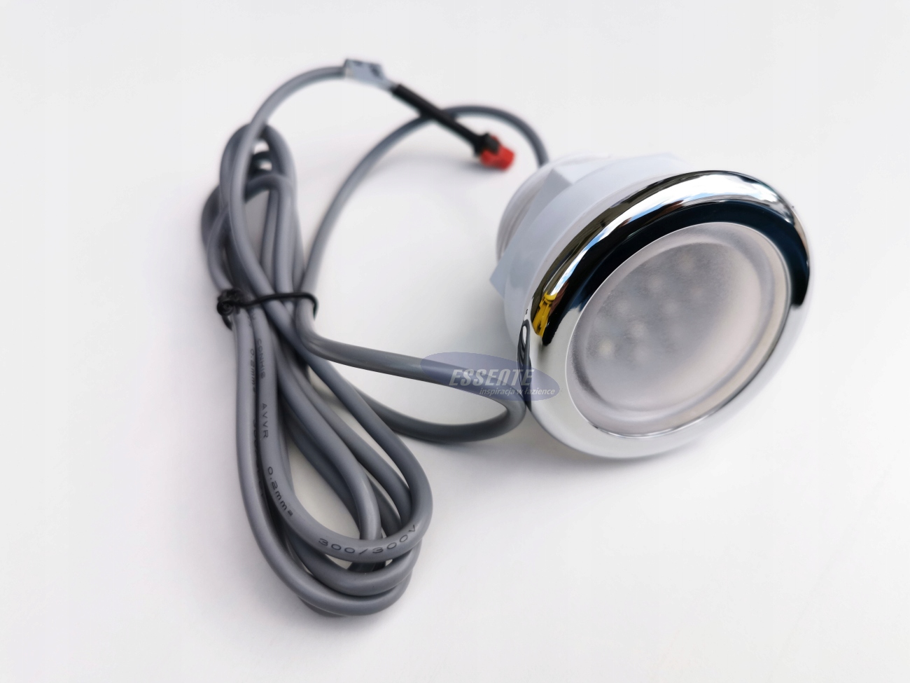 Світлодіодна лампа освітлення, яка використовується в гідромасажних ваннах. Світлодіодне освітлення 7 кольорів, живлення AC 12V. Світильник виготовлений з високоякісного пластику, корпус білий, зовні видно хромоване маскувальне кільце. Повні технічні характеристики нижче.