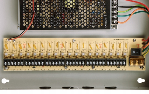 живлення має естетичний корпус твердого металу. Робота джерела живлення сигналізується світлодіодом, розміщеним у корпусі, джерело живлення стабілізується і підтримує до 18 пристроїв з макс. Завантаження 560mA Кожна струмна доріжка захищена полімерним запобіжником і має світлодіод, що інформує про напругу на заданому виході