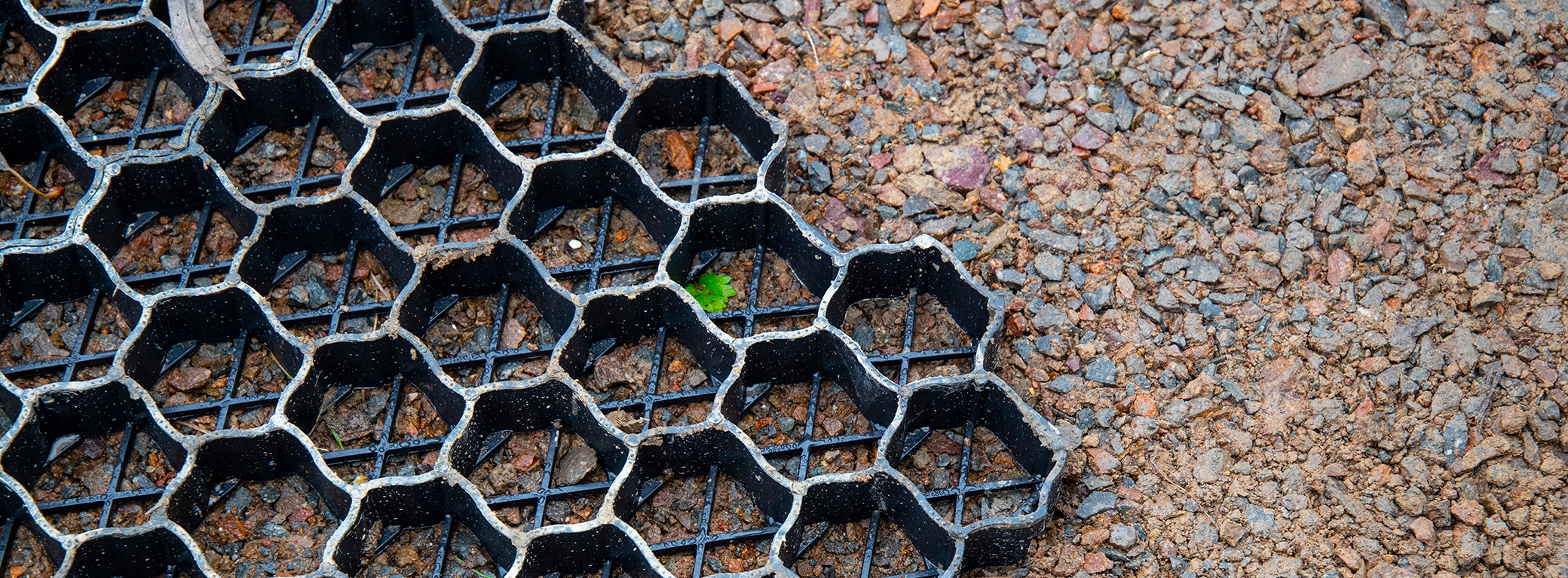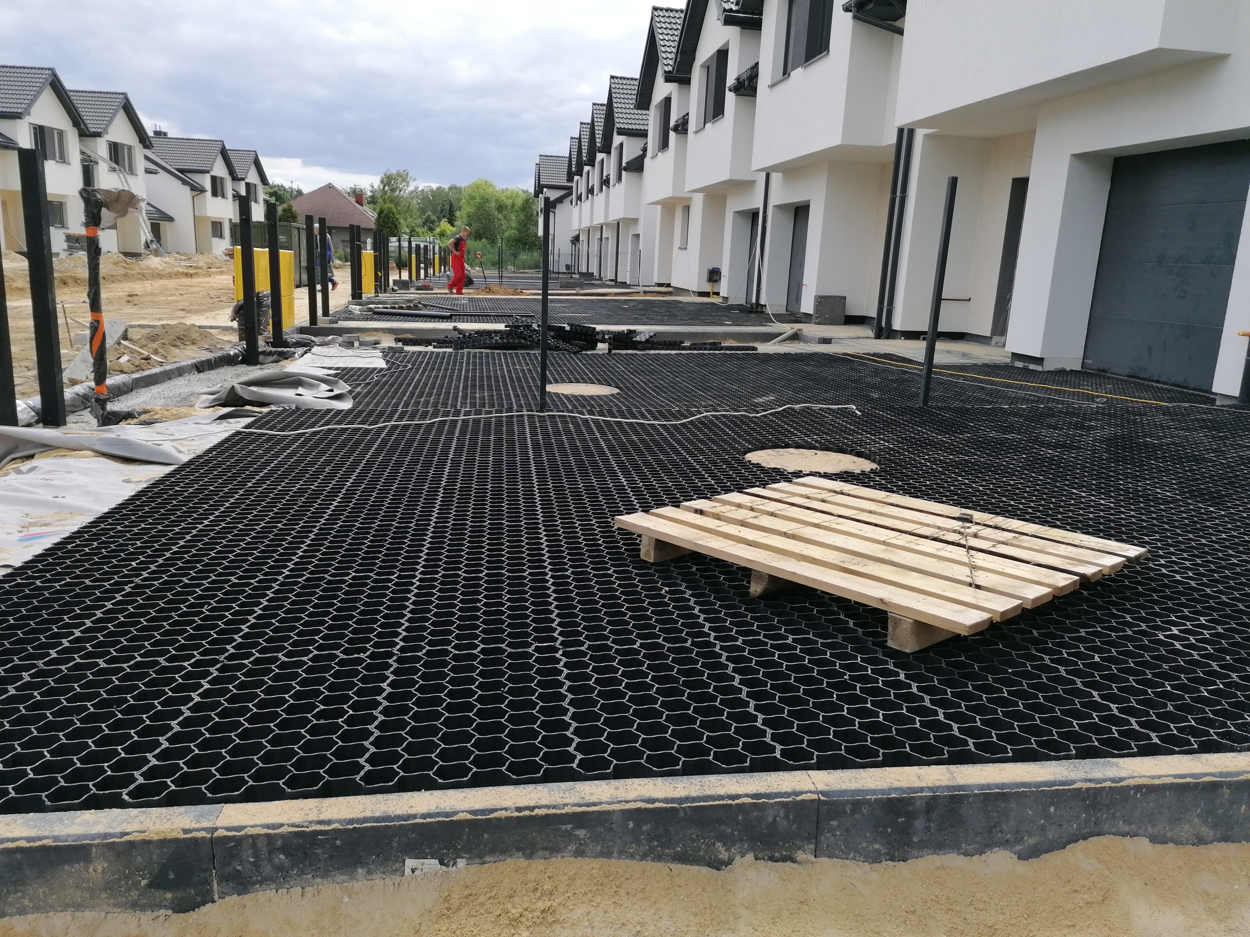 Екосітка використовується для зміцнення поверхонь не тільки в прибудинкових територіях, але і в інвестиційних. Чудово підійде як садова доріжка у вологих місцях або захистить під’їзд від колії.