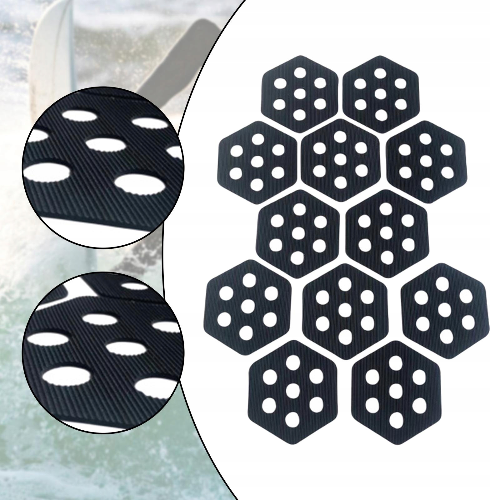 12x Hexagon Traction Pads для дошки для серфінгу. Рукоятка для палуби для серфінгу для чорного кольору