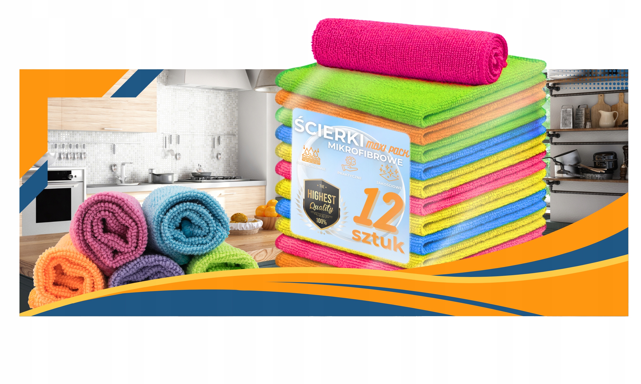 12x М'ЯКА МІКРОФІБРА КУХОННИЙ ЗБОРОК 30x30см ВИСОКА ЯКІСТЬ