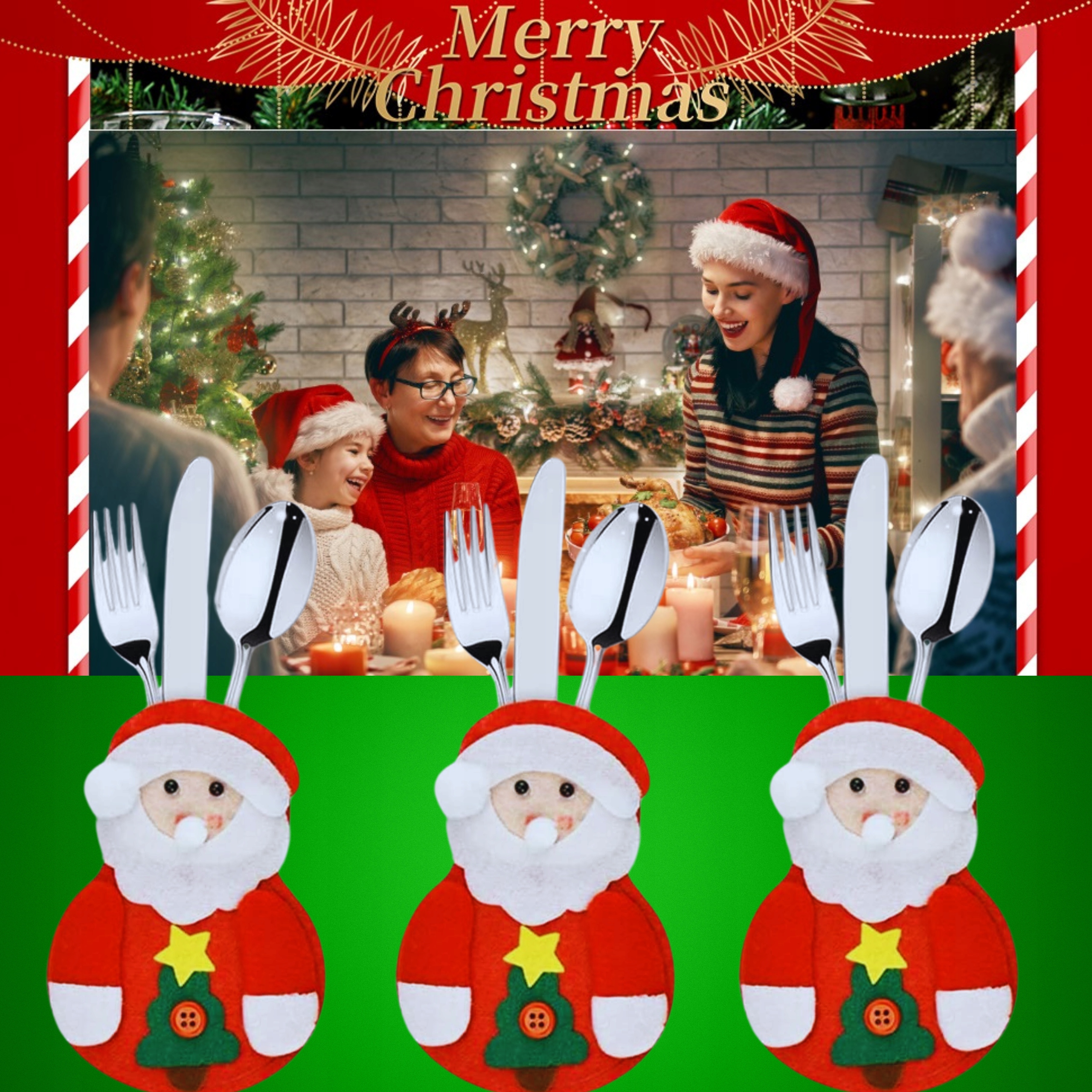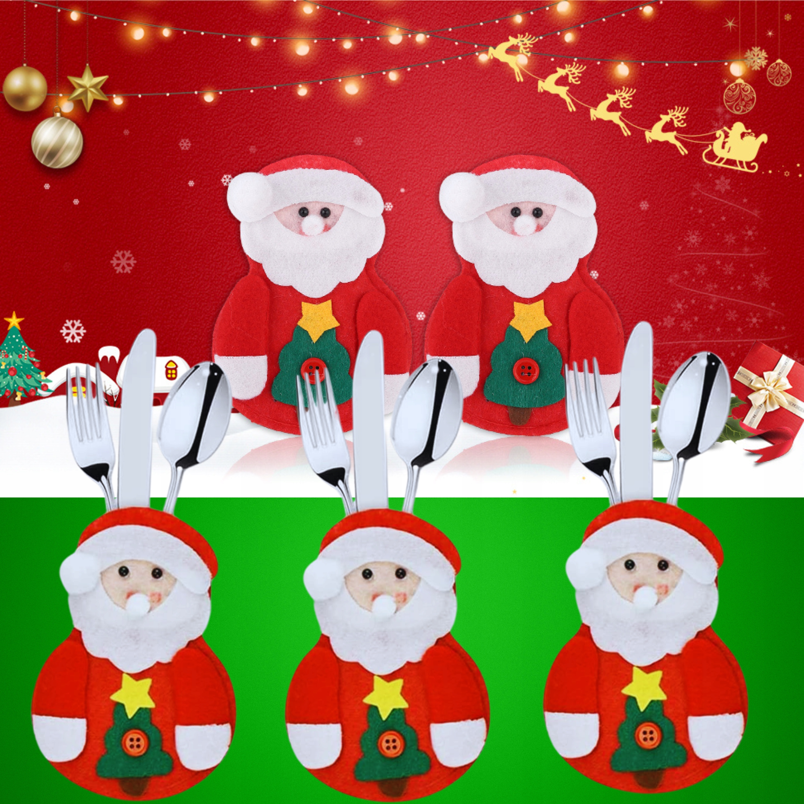 12x РІЗДВЯНА ЧОХЛА ДЛЯ ЧОХЛІВ ДЛЯ СТОЛОВИХ ПРИБОРІВ