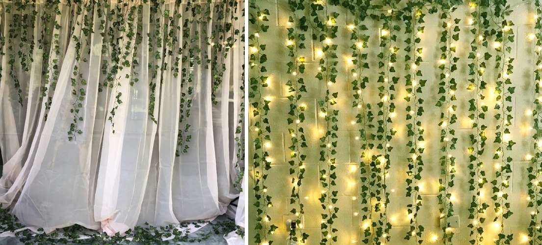 12 ШТУЧНИХ ГІРЛЯНД ПЛЮЩА ДЕКОРАТИВНА РОСЛИНА ДЛЯ СТІНИ БАЛКОН ТЕРАСА ВЕСІЛЛЯ 25,5 М