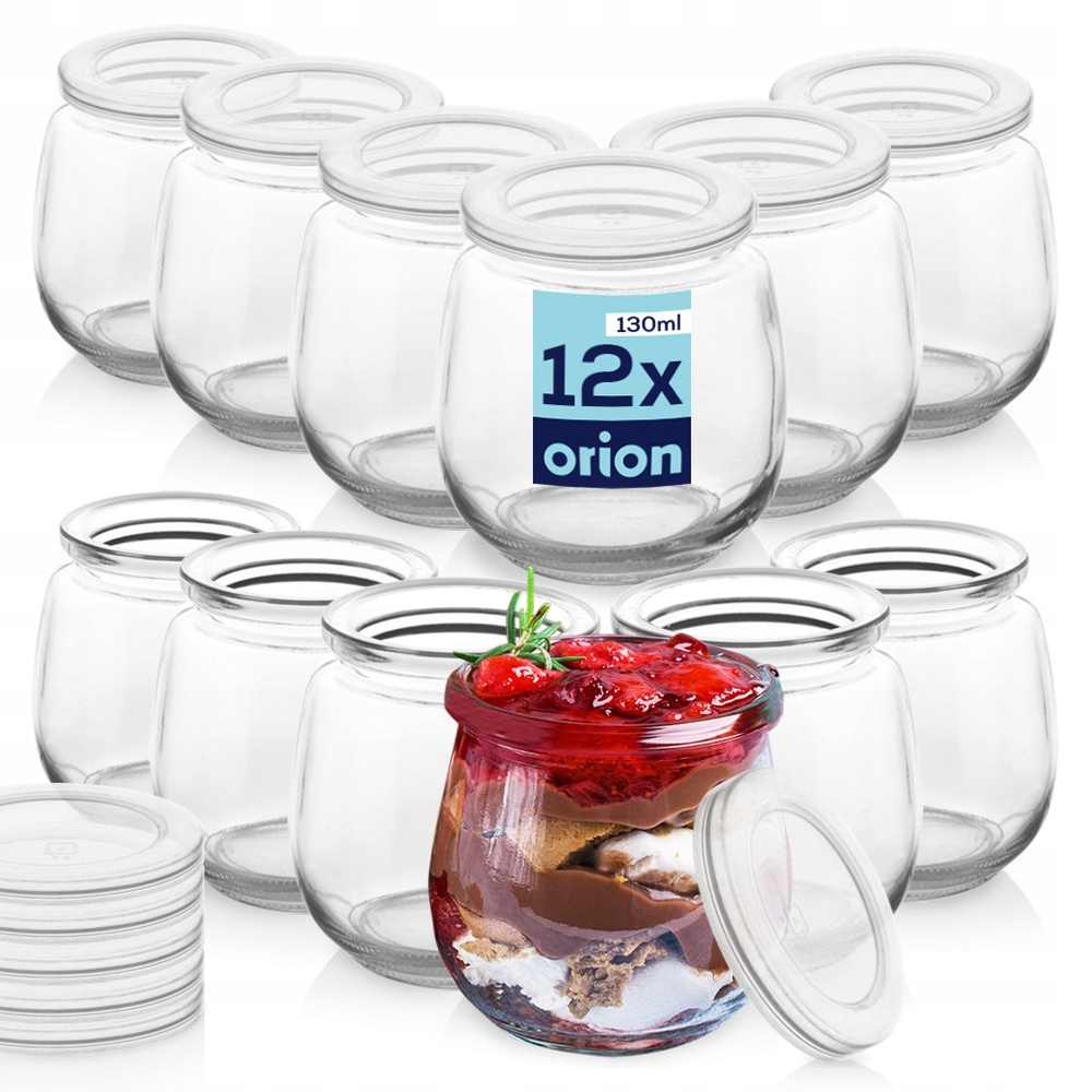12 баночок для йогурту з відповідними кришками. Корисно для подачі та зберігання йогуртів, десертів, консервів і спецій. Банки мають елегантний зовнішній вигляд, що дозволить правильно розмістити поміщені в них страви та десерти. Ці банки ідеально підходять для гастрономії, кондитерської, готельної промисловості та громадського харчування, де естетичні та практичні рішення є ключовими для подачі та зберігання продуктів. Оригінальний продукт чеського бренду Orion. Вироблено відповідно до європейських стандартів.