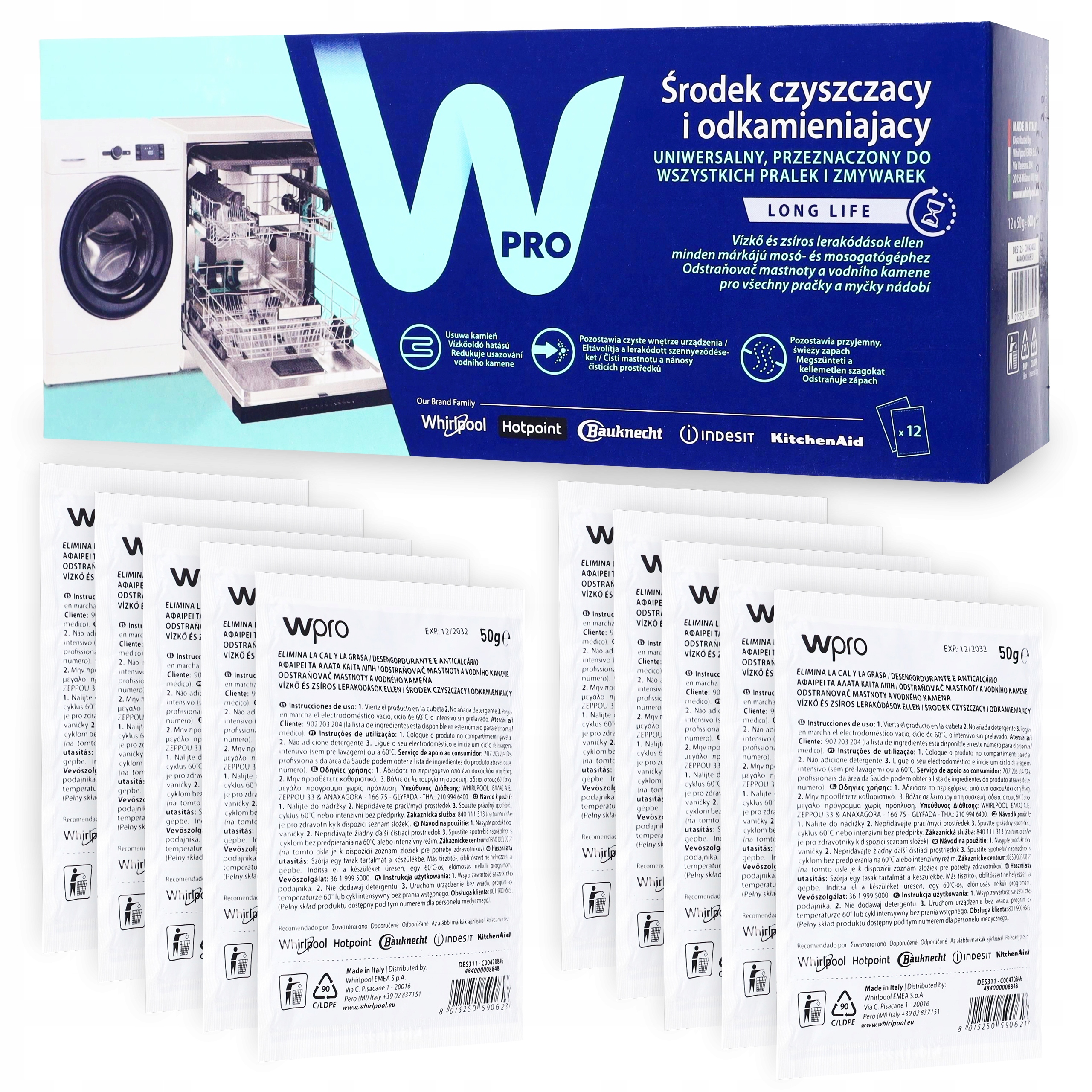ORIGINAL Wpro Засіб для видалення накипу для пральних, прально-сушильних машин, посудомийних машин | 50г 12 шт