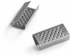 Правильно профілювали олов'яні затискачі. Вони використовуються для підключення стрічок при підключенні навантажень із смужкою або затискачем. Завдяки пористому структурі всередині застібки стрічка з'єднана і жорстка, що є гарантією захисту від навантаження під час транспортування.