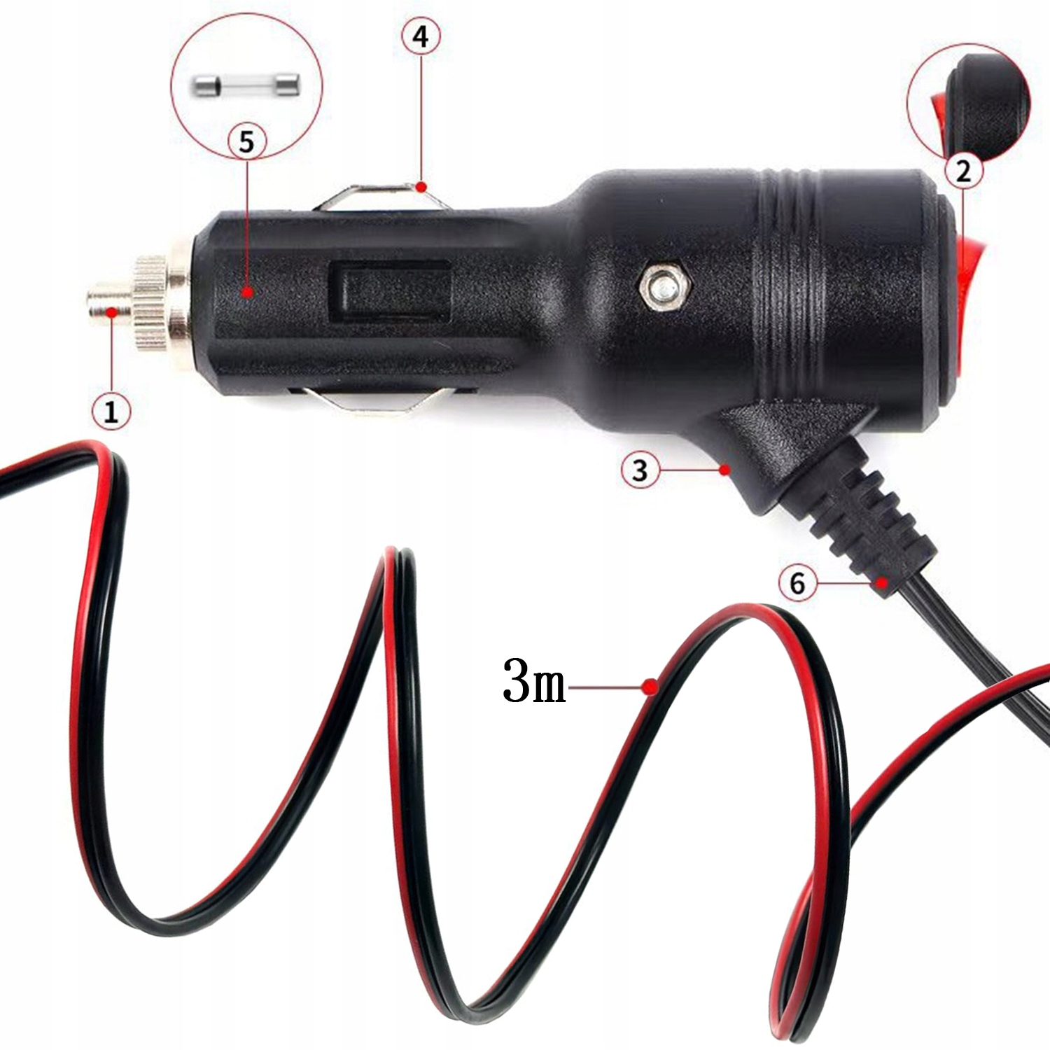 ПОДОВЖУВАЛЬНИЙ КАБЕЛЬ ДОВЖИНИ ДО ГНІЗДА ПРИКУРУВАЛЬНИКА З ПЕРЕМИКАЧОМ 15A 16AWG