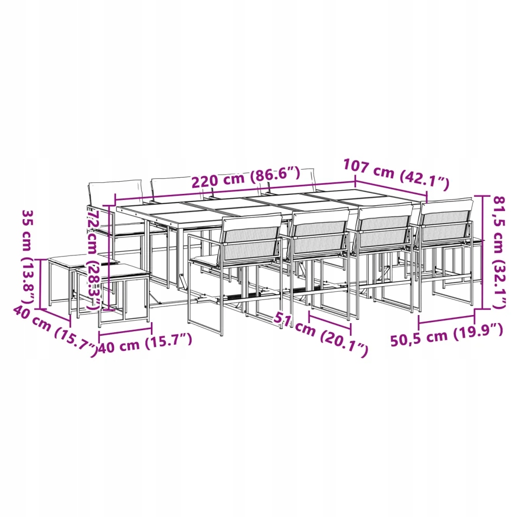 - Міцний і стійкий каркас: сталевий каркас з порошковим покриттям гарантує міцність і стабільність столу при щоденному використанні на вулиці.