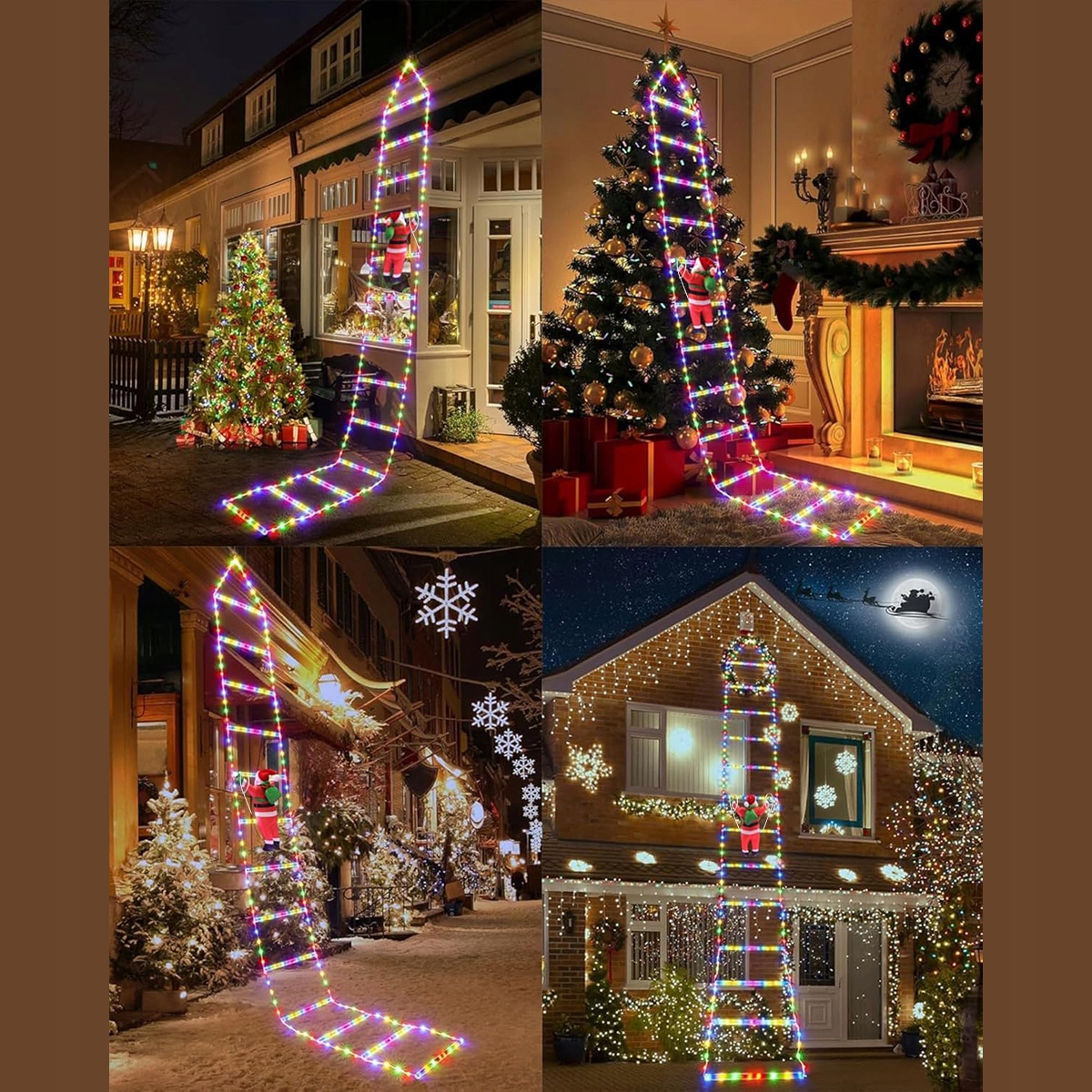 ✅Знімний Санта-Клаус — Санта постачається з кабельними стяжками, щоб його можна було від’єднати та розмістити в різних місцях на драбині для різноманітних візуальних ефектів.