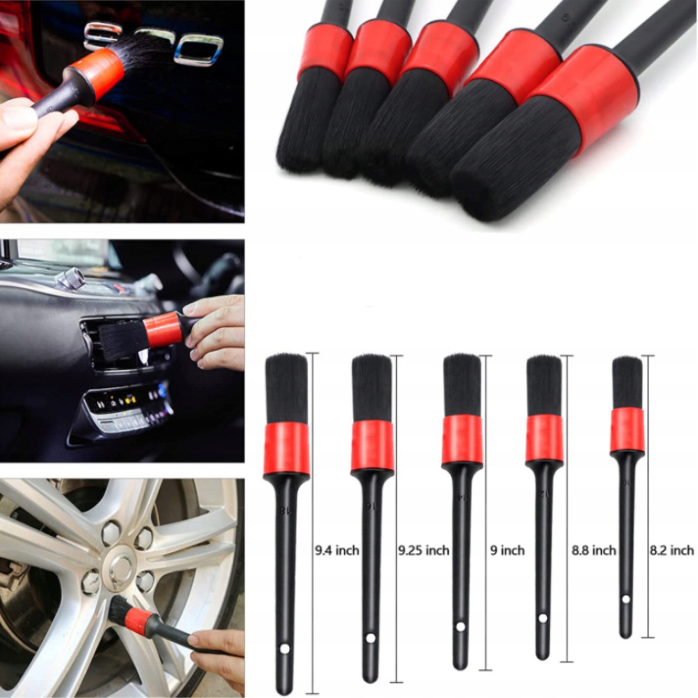 Щітки для догляду за автомобілем: виготовлені зі 100% натуральної щетини, щітки для догляду за автомобілем 5 розмірів із надзвичайно м’якою, гнучкою щетиною, яка не легко випадає. Без металевої автомобільної щітки, без ризику пошкодити або подряпати делікатні колеса. Набір щіток для прибирання автомобіля для вологого та сухого використання. Тримайте щітки для чищення автомобіля під рукою та легкодоступними завдяки отворам для підвішування на ручці. Ці автомобільні щітки різних розмірів задовольняють усі ваші потреби.