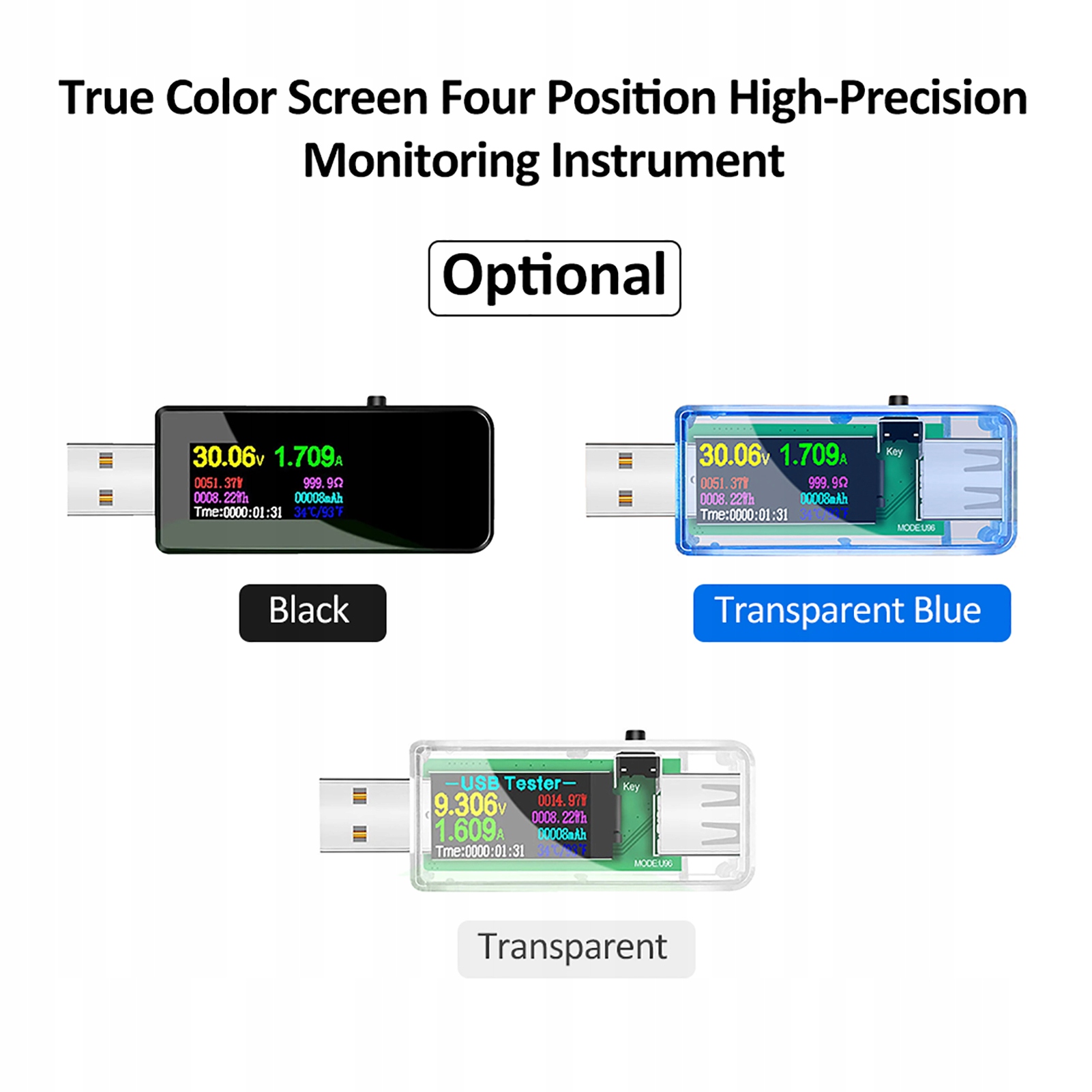 - Потужна функція: Цей тестер високий, висока безпека напруги USB та виявлення потужності. Він може бути використаний для вимірювання напруги, струму, потужності, WH, потужності, часу клею, температури та іншої інформації.