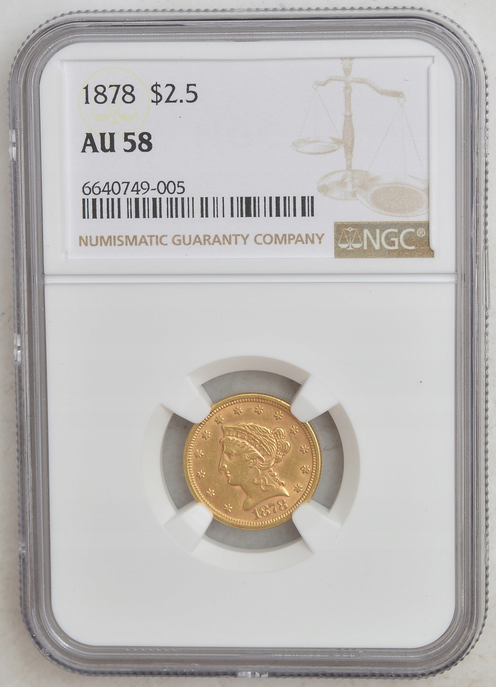 13.gp.USA , 2 1/2 ДОЛАРИ 1878 NGC AU58