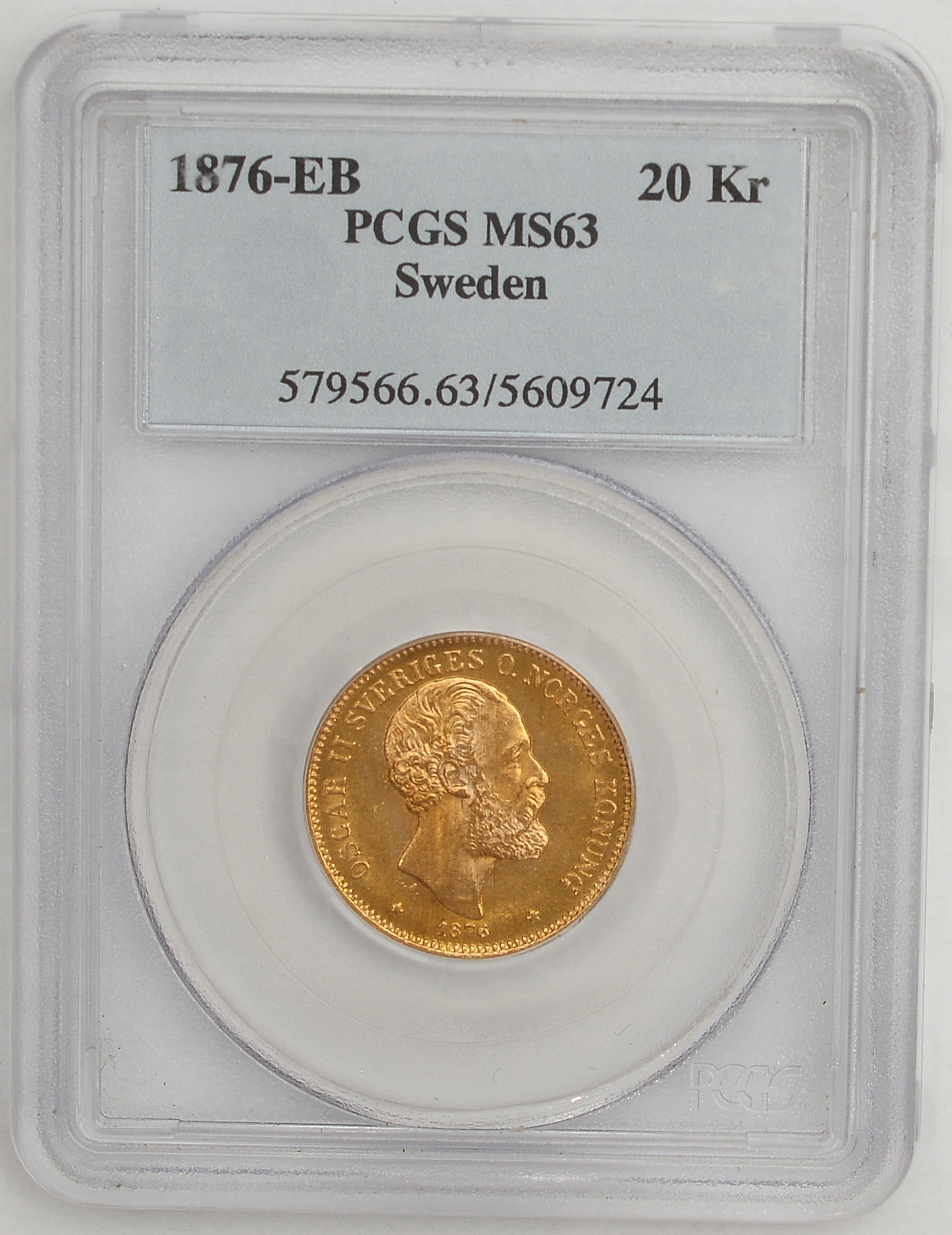 13.hf.ШВЕЦІЯ, O.II, 20 КРОН 1876 ЕБ PCGS MS63