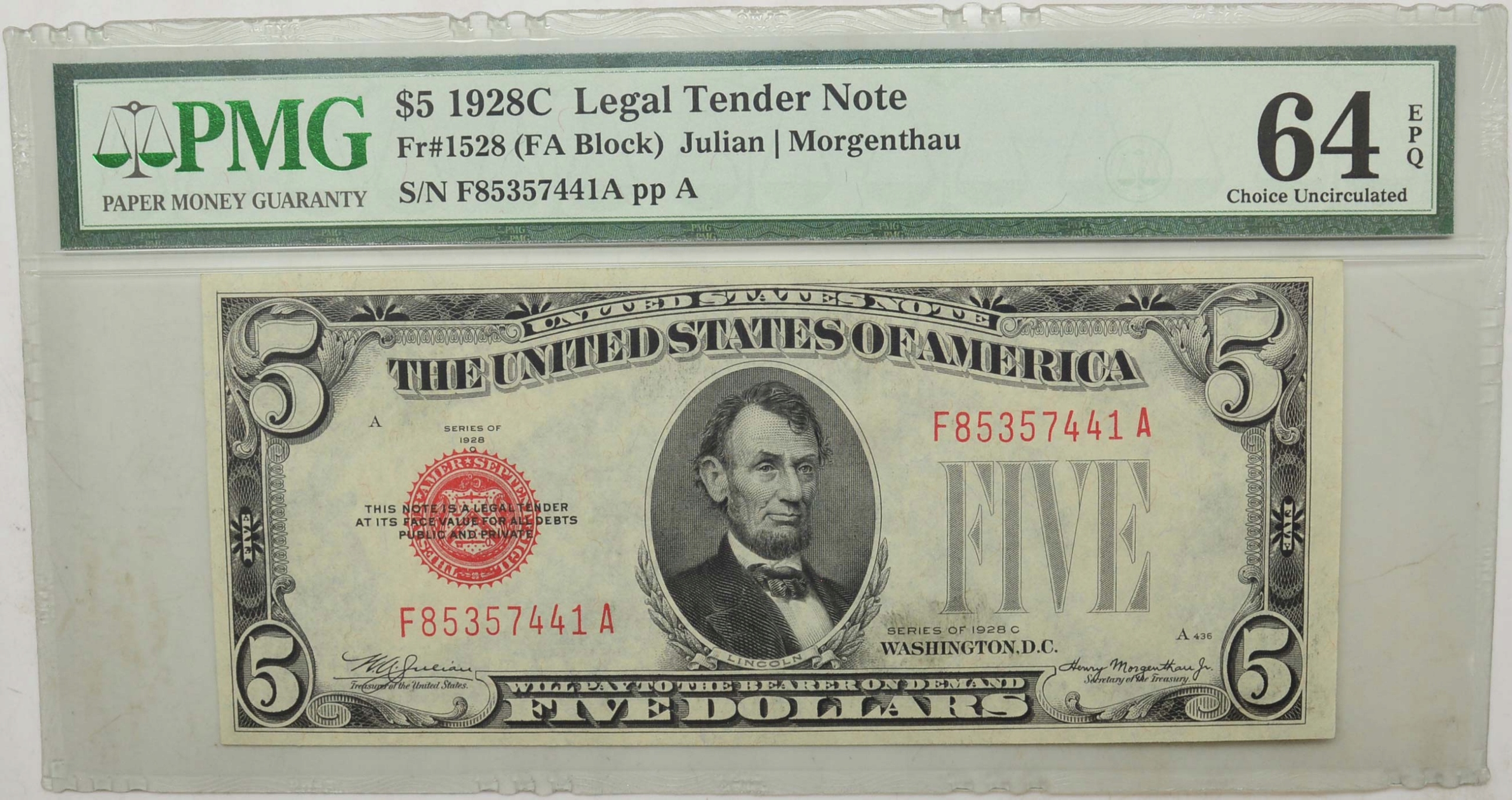 13.hh.USA , 5 доларів 1928 C, банкнота США, PMG 64