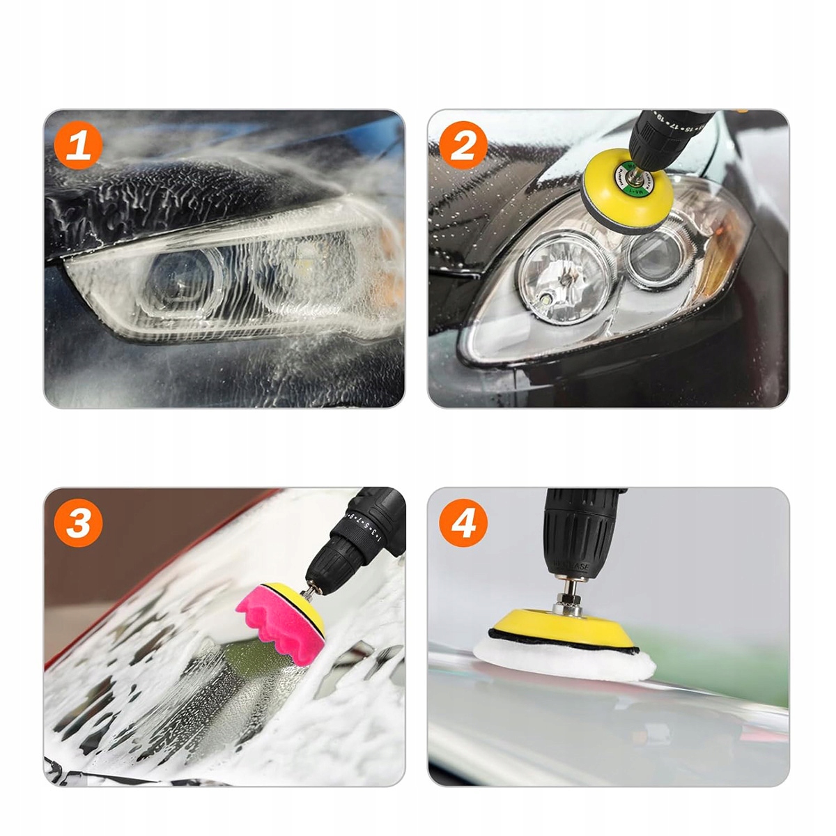 Набір для відновлення фар із насадкою для шліфування, встановленою на свердлі, виготовленою з міцного наждачного паперу з карбіду кремнію. Виразний розмір зерна забезпечує точне полірування. У набір входить піна, що гасить вібрацію, що забезпечує тривале використання.