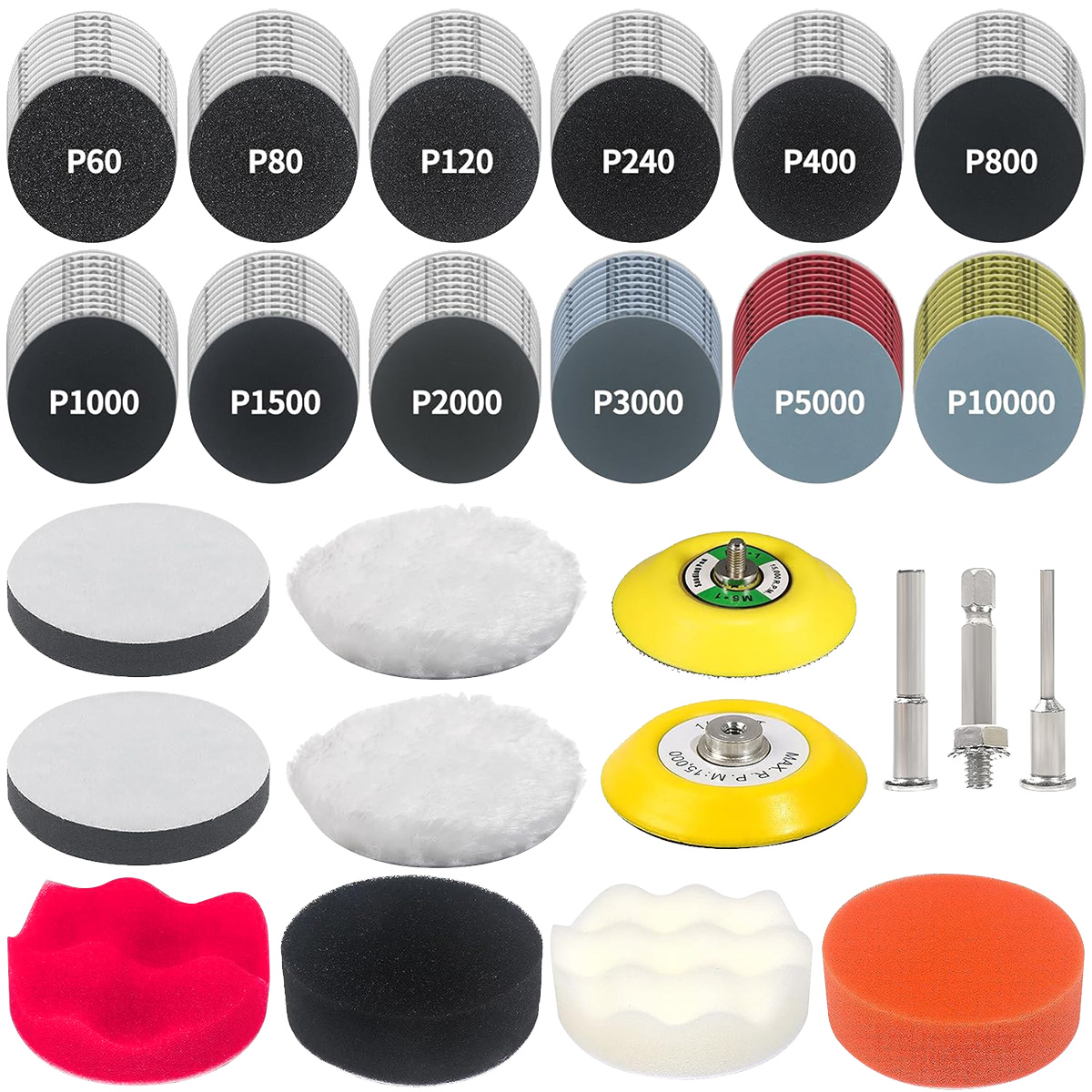 ⭐120 штук 75 мм мокрих/сухих шліфувальних дисків із зернистістю 10 x 60, 80, 120, 240, 400, 800, 1000, 1500, 2000, 3000, 5000 і 10000,