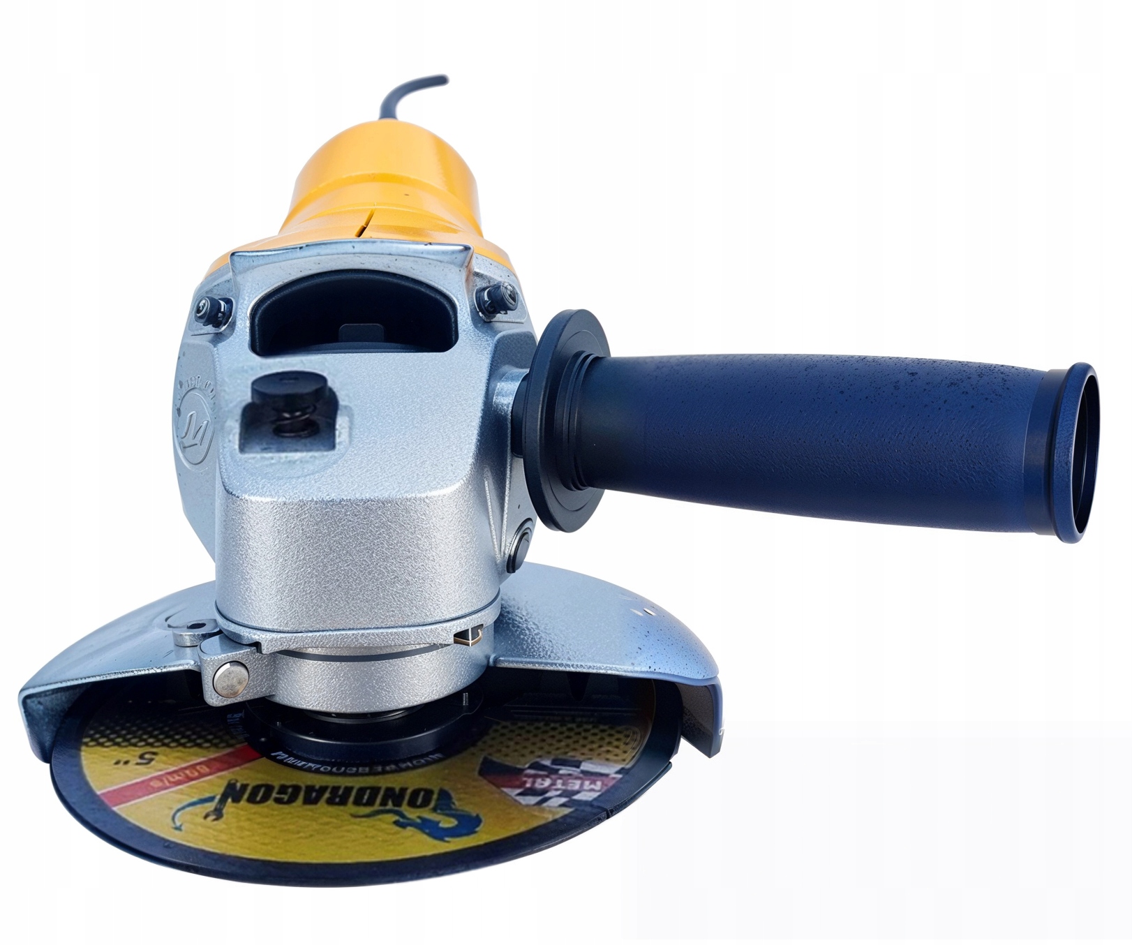 кутова шліфувальна машина, призначена для різання, шліфування та полірування матеріалів, таких як метал, дерево, бетон, пластмаси, кераміка, камінь та багато інших. Він був обладнаний двигуном 1350 Вт, який дозволяє використовувати всі види дисків, пензлів та абразивних дисків діаметром до 125 мм. Потужність двигуна дозволяє отримати швидкість 11000 об / хв.