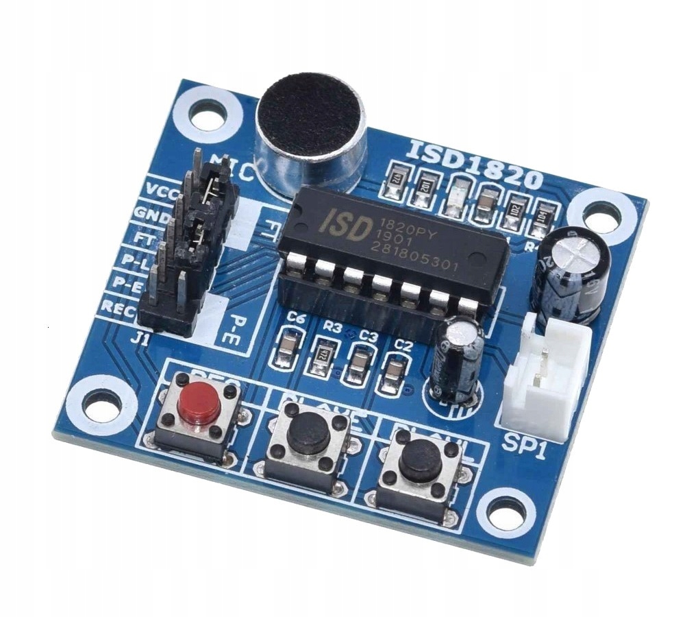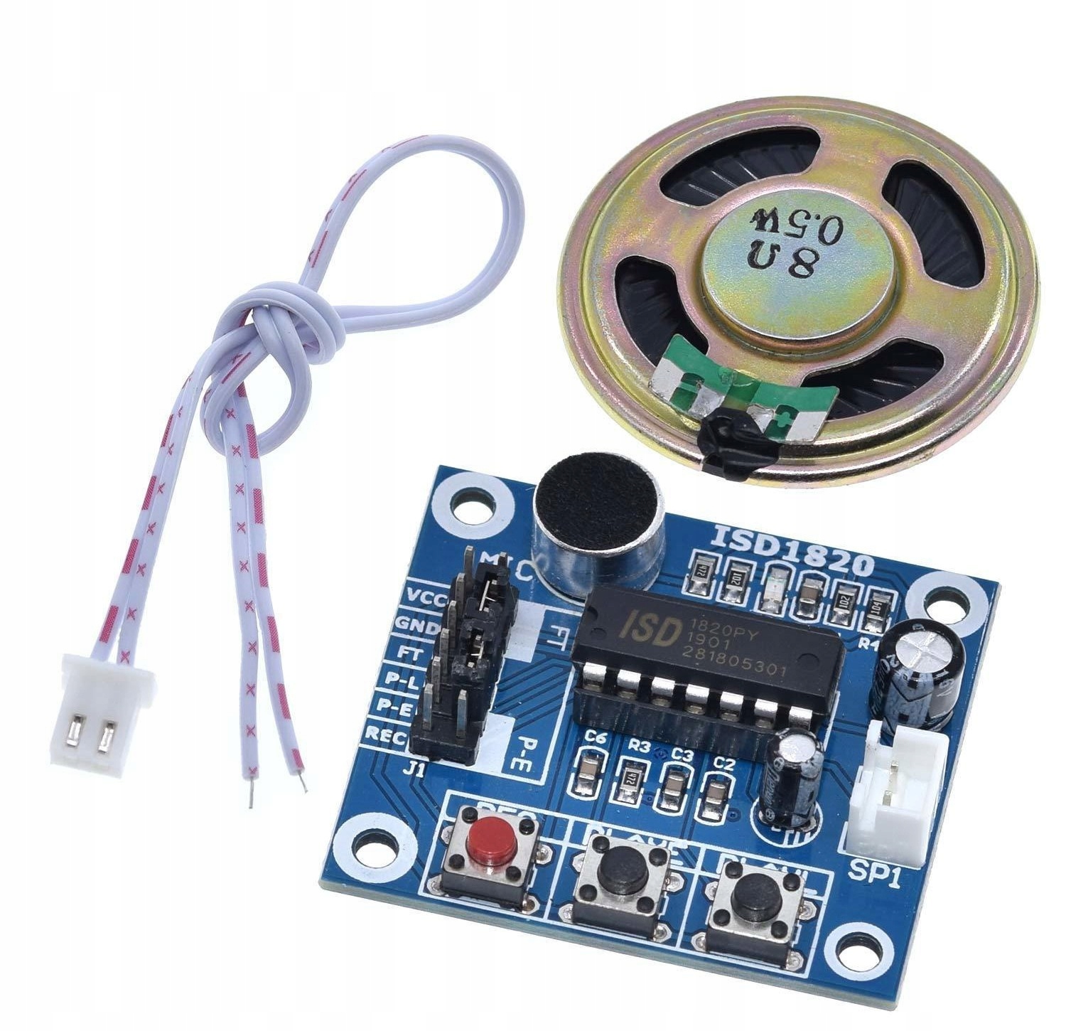 ✔️ Модуль для запису звуків і повідомлень на мікросхемі ISD1820 . Максимальний час запису становить 11 секунд, тому модуль можна використовувати в багатьох додатках.