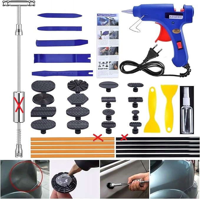 - Простий у використанні: Порівняно зі старою версією набору французького -барбійського лікування, новий важить менше половини, але ефект вм'ятини залишається незмінним. Набір Non -Wharfan для ремонту вм'ятин може легко керувати кожною людиною, навіть дівчина може легко виправити. Більшість вм'ятин можна вилучити протягом півгодини, це дозволяє заощадити багато грошей і часу, але ремонт вм'ятин для тіла також може бути використаний на невизначений термін. 4 Короткий інструмент T - це потужний режим тяги, який відновлює вм'ятини будь -якого розміру з власною силою, а ефект швидкий і простий. Ви матимете різний досвід з видаленням зубів у зоні "Зроби сам".