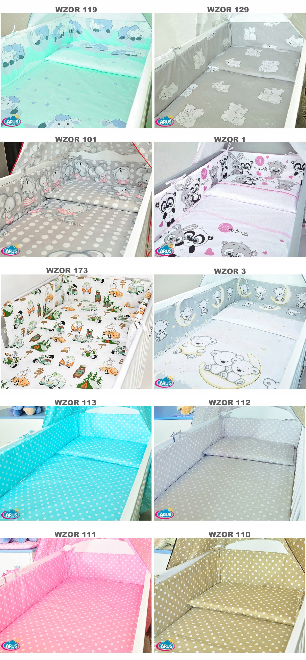 7. Протектор бампера 180 х 20 см - це ідеальний захист для голови вашої дитини. Як ЄДИНА компанія на Allegro, ми пропонуємо її з жорсткого поролону 2 см товщиною (а не тонкого флізеліну, як інші). Тільки така товщина і жорсткість забезпечує ідеальний захист від ударів об щаблі. Протектор має вшиті ремені для кріплення до ліжка. Зав’язки виготовлені того ж кольору, що й постільна білизна.