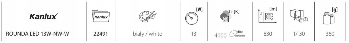 Даунлайт ROUNDA LED 13W-NW-W KANLUX