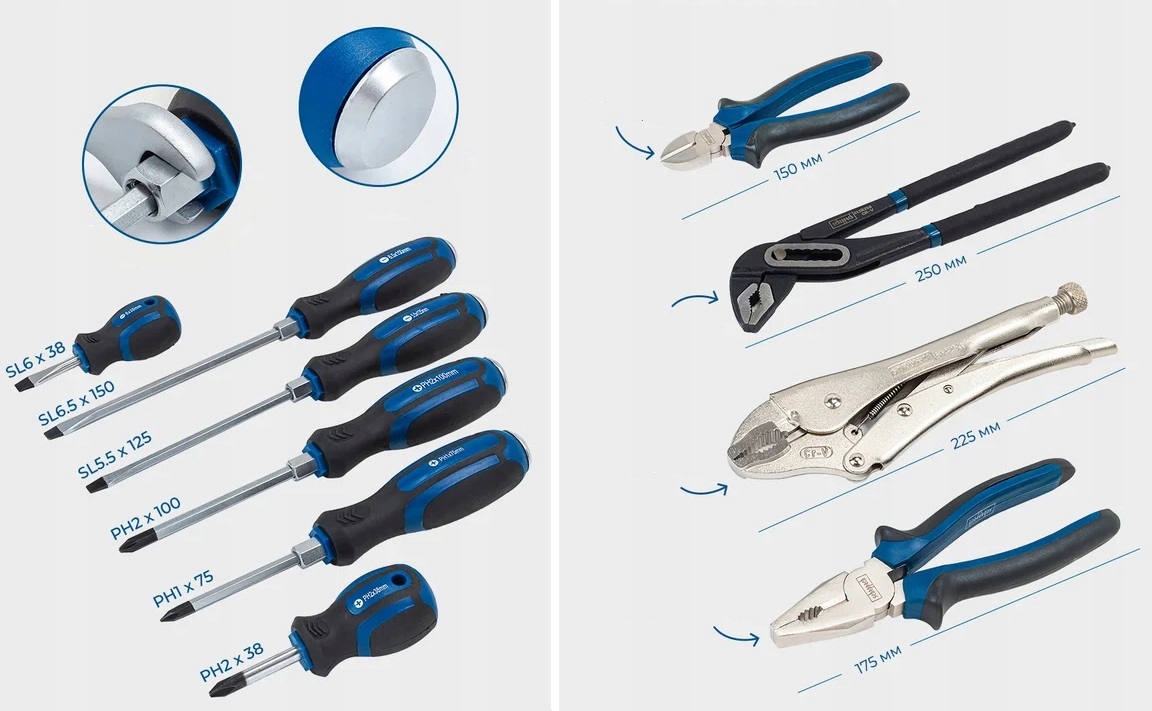- викрутки: pH 2x38 мм, pH 2x100 мм, pH 1x75 мм; SL 5.5x125 мм, SL 6x38 мм, SL 6,5х150 мм. 6 ПК;
