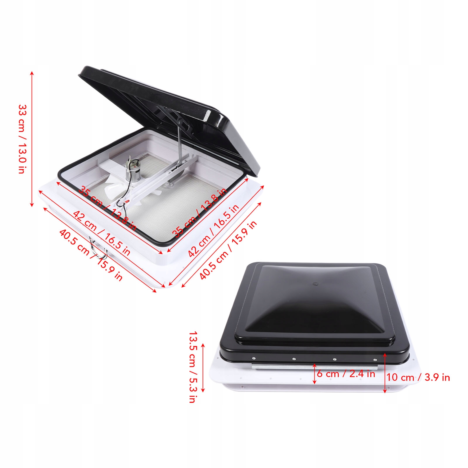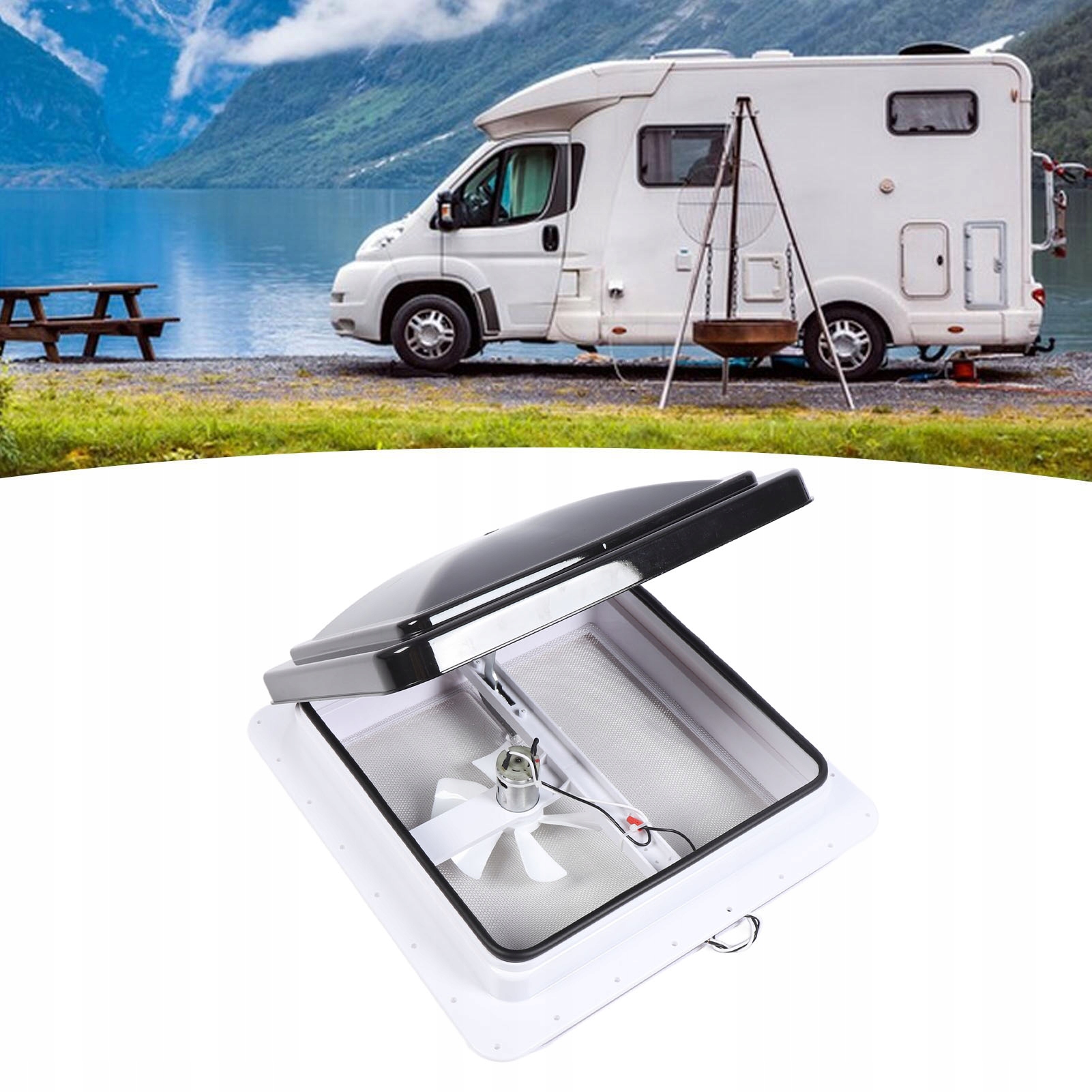- підходить для встановлення на RV, причепах, автомобілях, автобусах, яхтах тощо, щоб швидко замінити внутрішнє та зовнішнє повітря, забезпечуючи свіжість повітря до кабіни