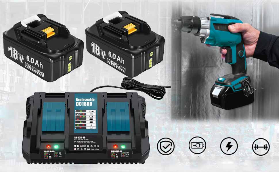 ✅ сумісна з Makita BL1860B, BL1860, BL1850B, BL1850, BL1840B, BL1840, BL1830B, BL1830, BL1820, BL1815, BL1825, BL1835, BL1845, 194205-3, 194309-1, 19420-5- 3 -6 Побудована система акумулятора спілкується, щоб максимально контролювати електроенергію, напругу та температуру. Статус експлуатації, перегрівання, пошкодження акумулятора та заряджена потужність.