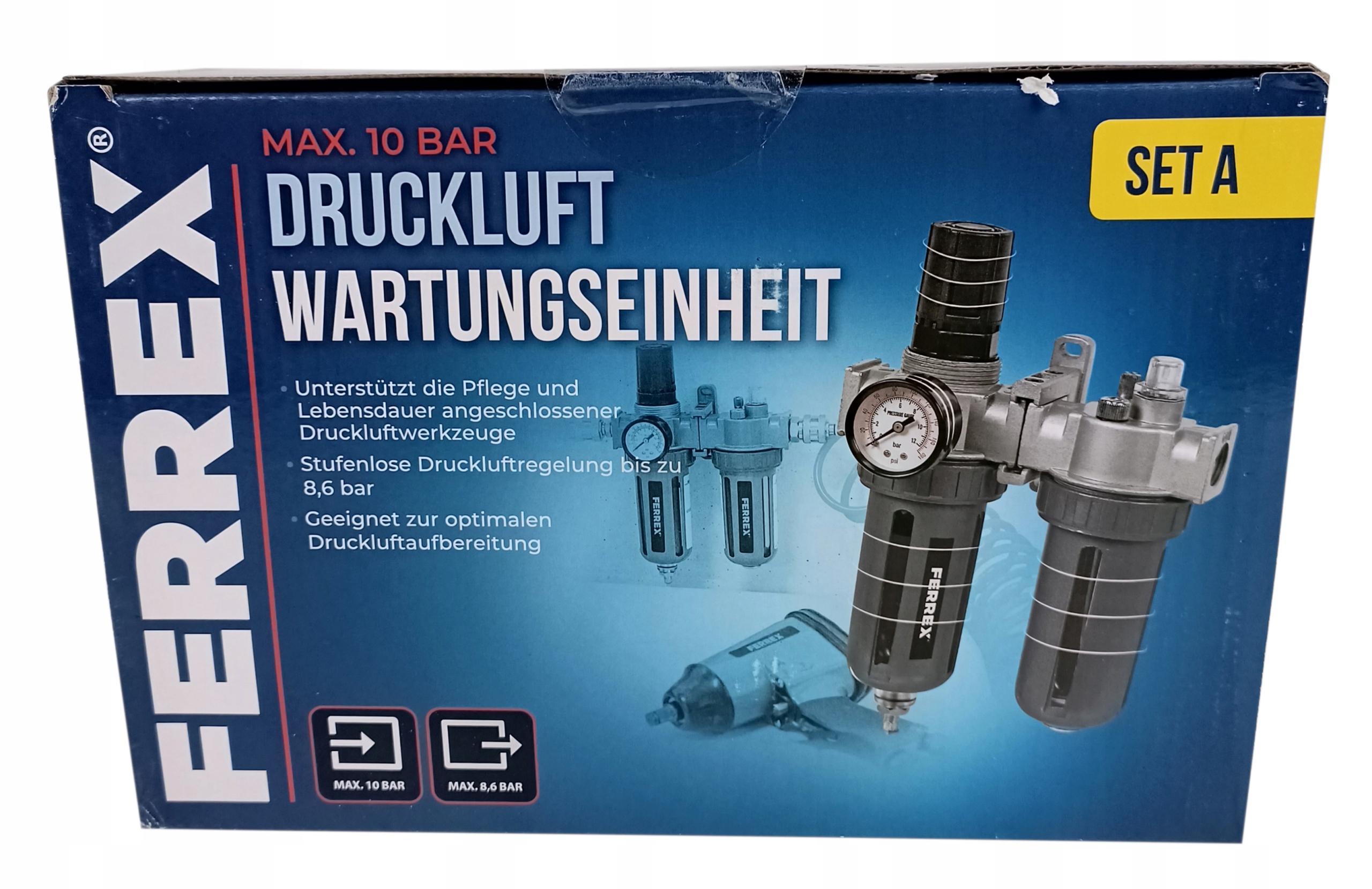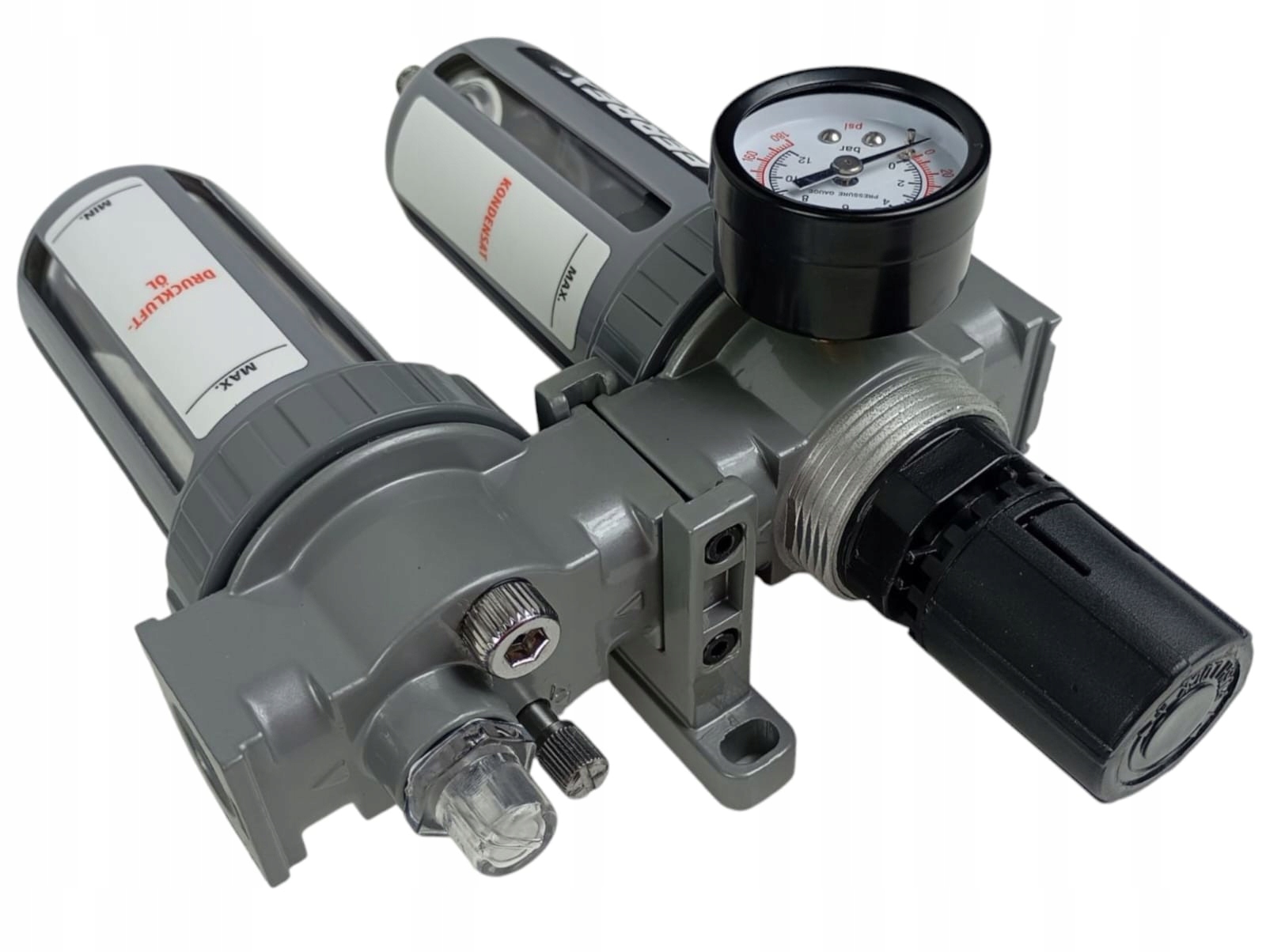 - універсальність: Набір дозволяє фільтрувати, регулювати та змащувати стиснене повітря, що забезпечує оптимальну роботу пневматичних інструментів. потреби, запобігання раптових падінь тиску.