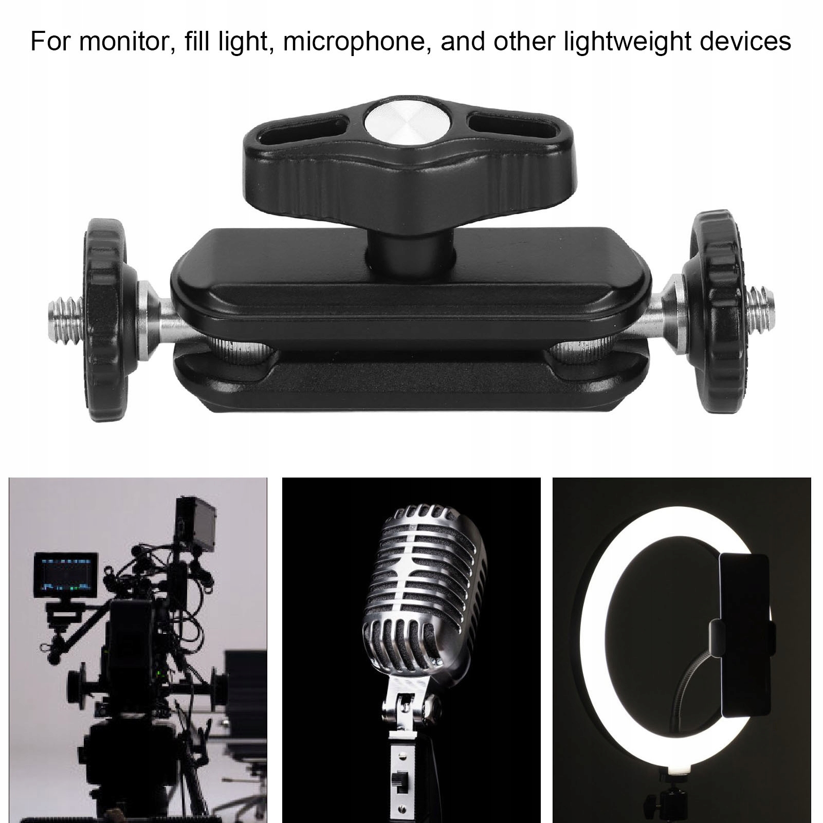 Функція: 1. Багато додатків: Цей подвійний затискач з кульовою головкою може використовуватися для розширення світлових пристроїв, таких як монітори, наповнення світильників, мікрофони тощо